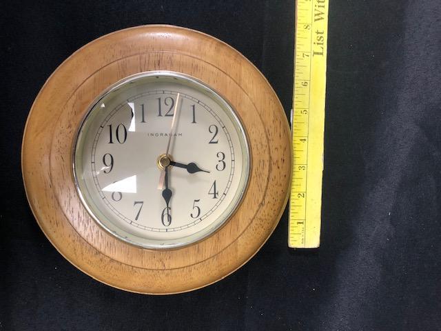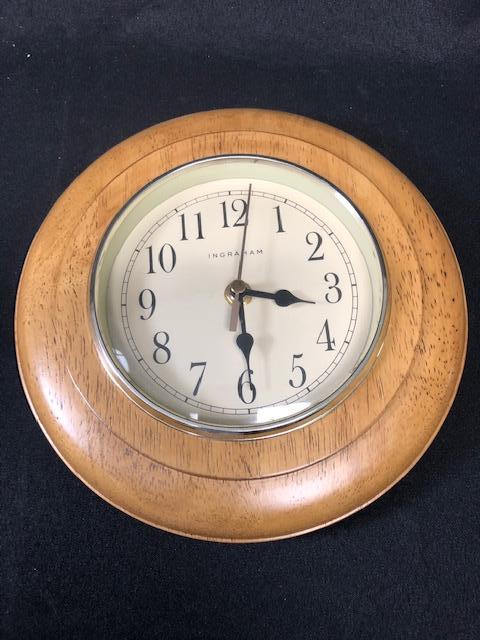 Ingraham Wall Clock. Round wood frame. Battery Operated.