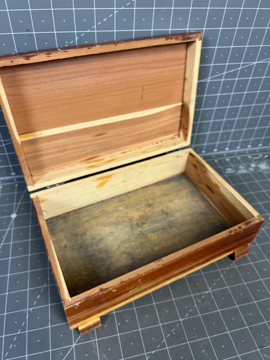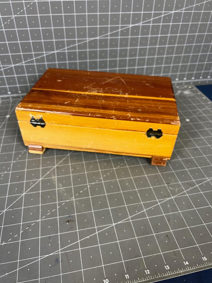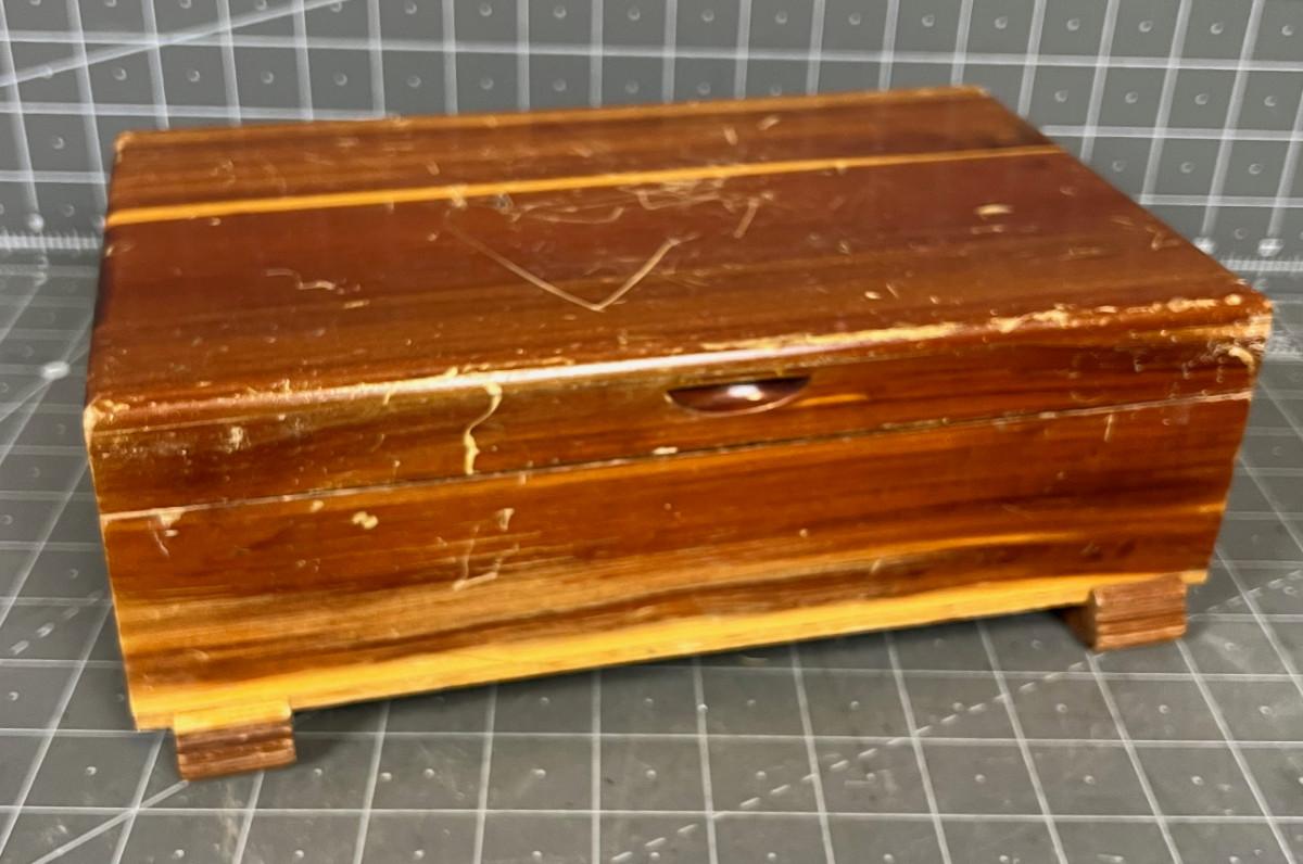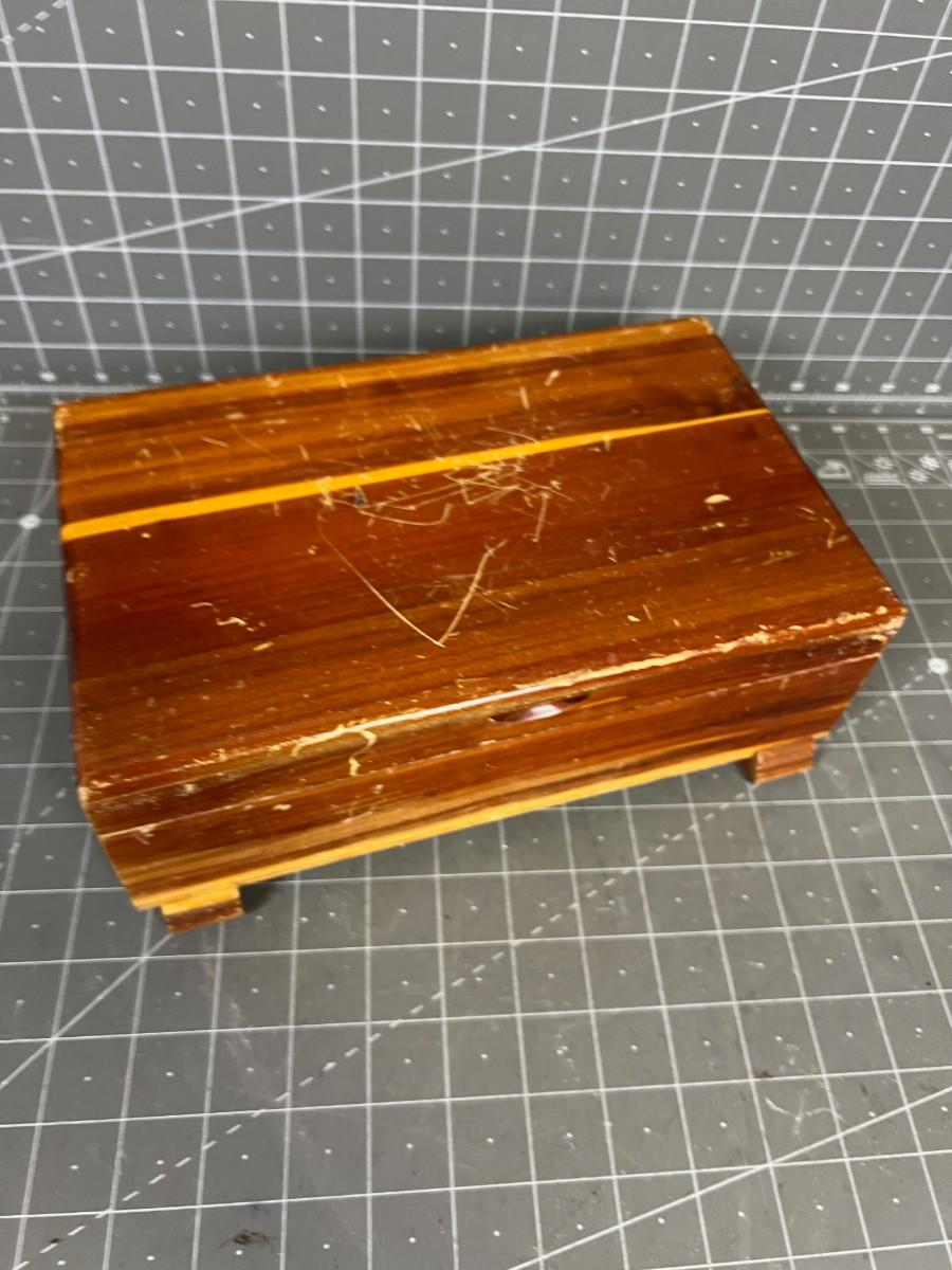 11 x7 x4" Scratched needs refinished or just loved the way it is.