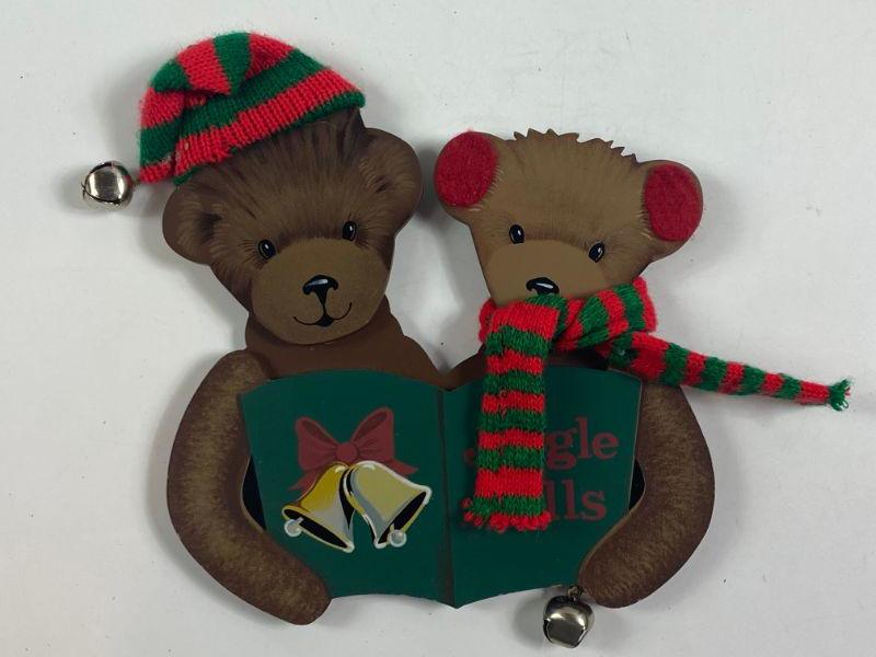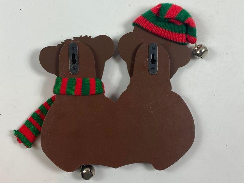 WOOD JINGLE BELL WALL HANGING BEARS WITH BELLS
