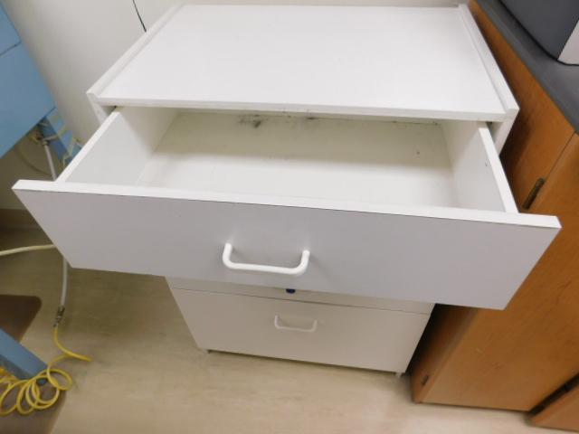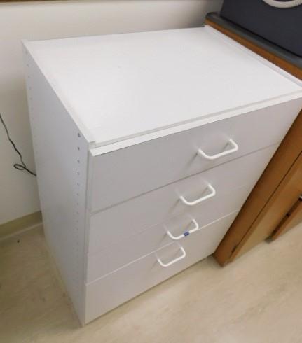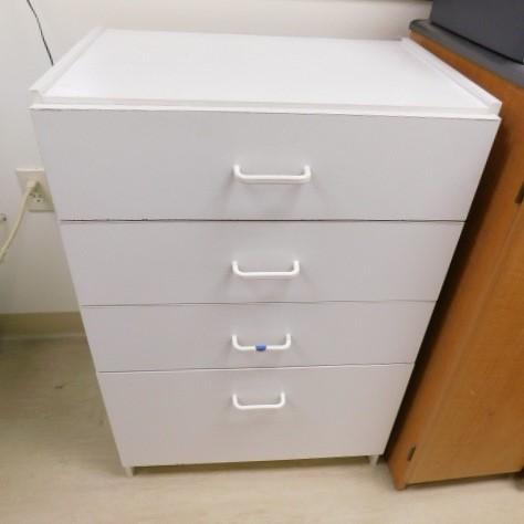 Wood Laminate Four Drawer Office Storage Cabinet 24"x16"x35" has some marks and scratches but very funcitonal