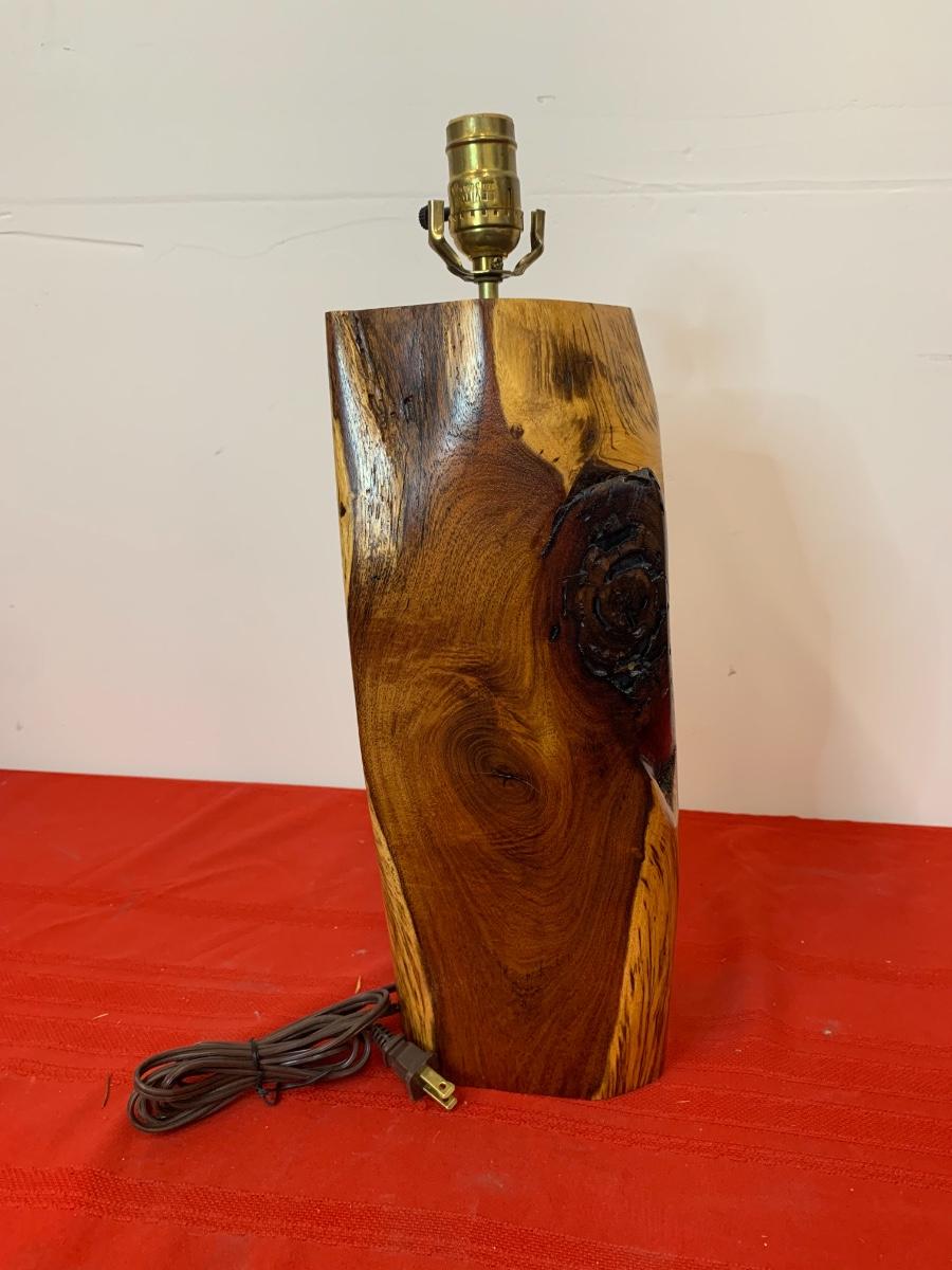 Gorgeous wooden lamp with felt bottom. No lampshade. In excellent condition. Height= 15 inches.