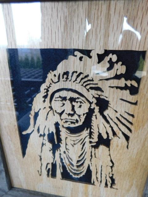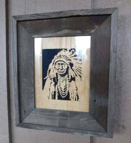 Wood Laser Cut Portrait of Aged Native American Framed 17"x14" wood frame