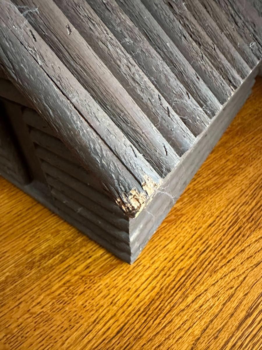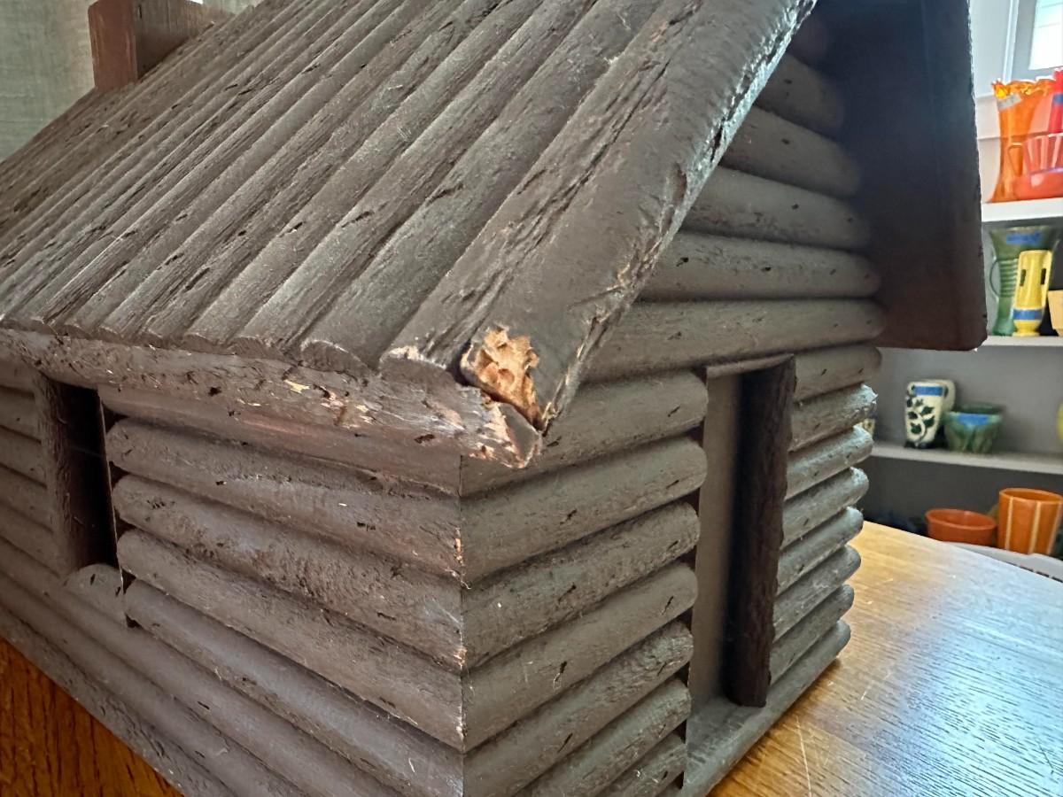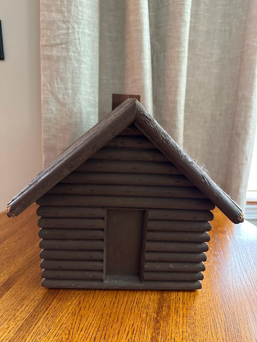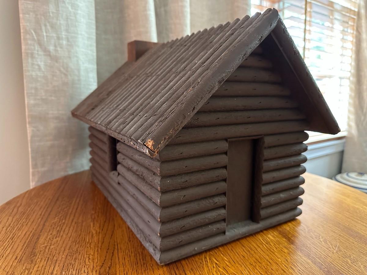 Brown Wood Log Cabin measures 13.5"w x 19"d x 13.5"h