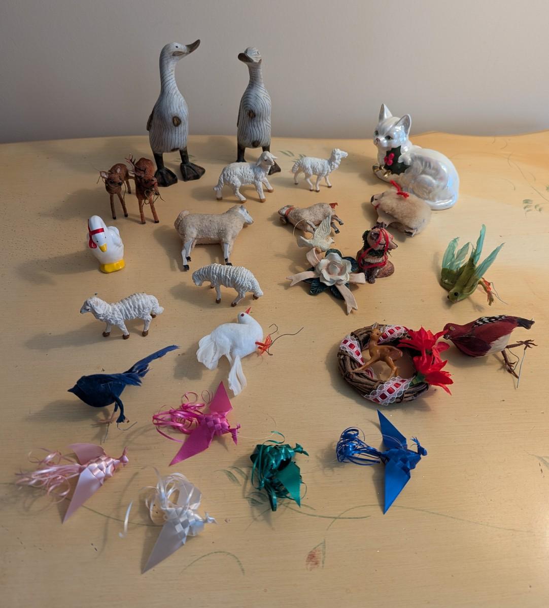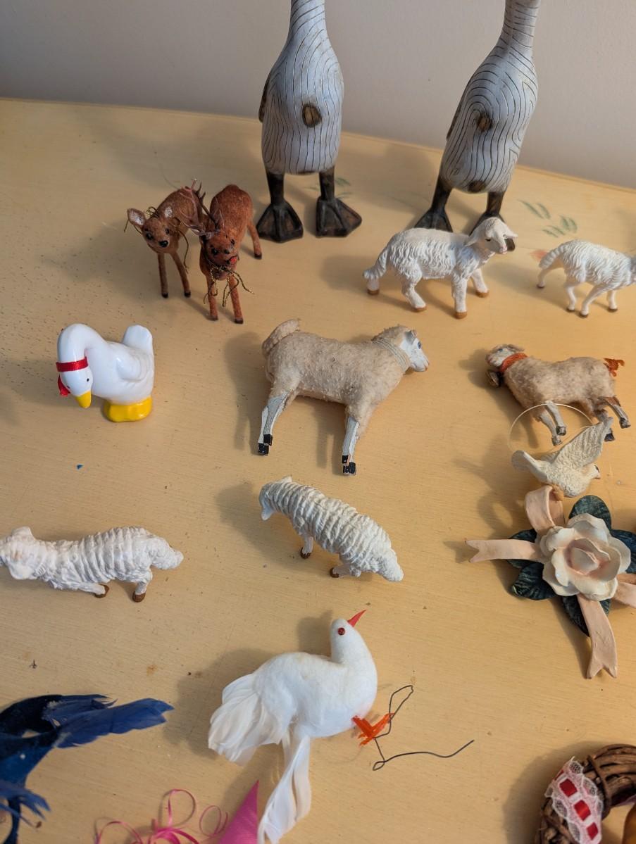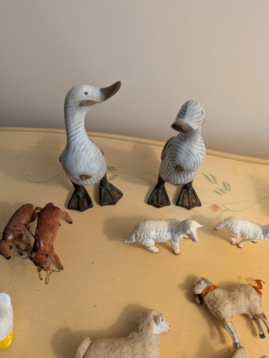 Wood Look Duck Figures Vintage Bird Ornaments Nativity Animals West Germany Deer Lot 4
