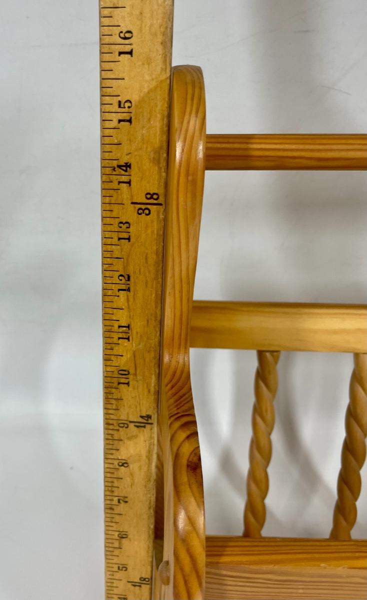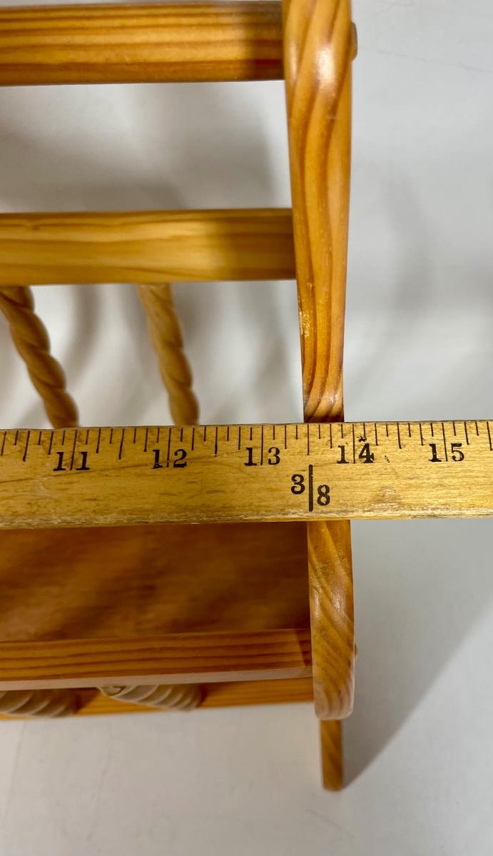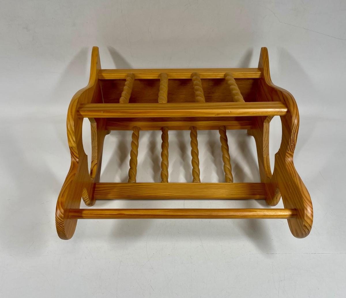 Magazine Rack made from varnished pine. Approx 16" tall and 14" long. Excellent condition.