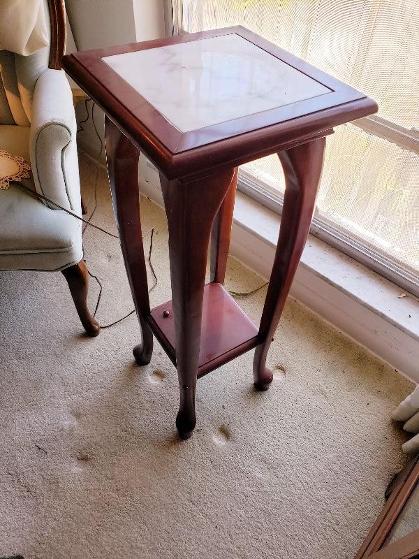 Wood Marble Top Pedestal Stand