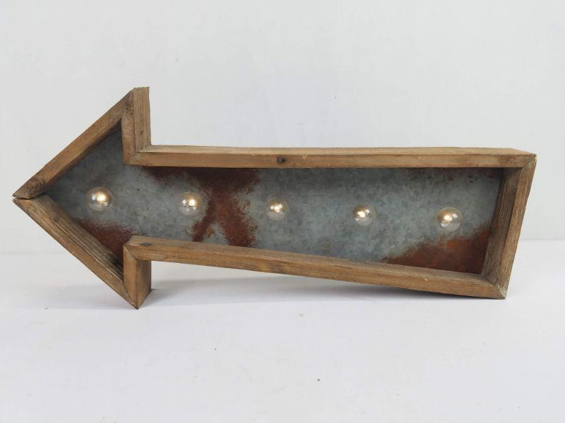 Wood & Metal Arrow Decor, Lights up, requires 2 AA batteries, Works