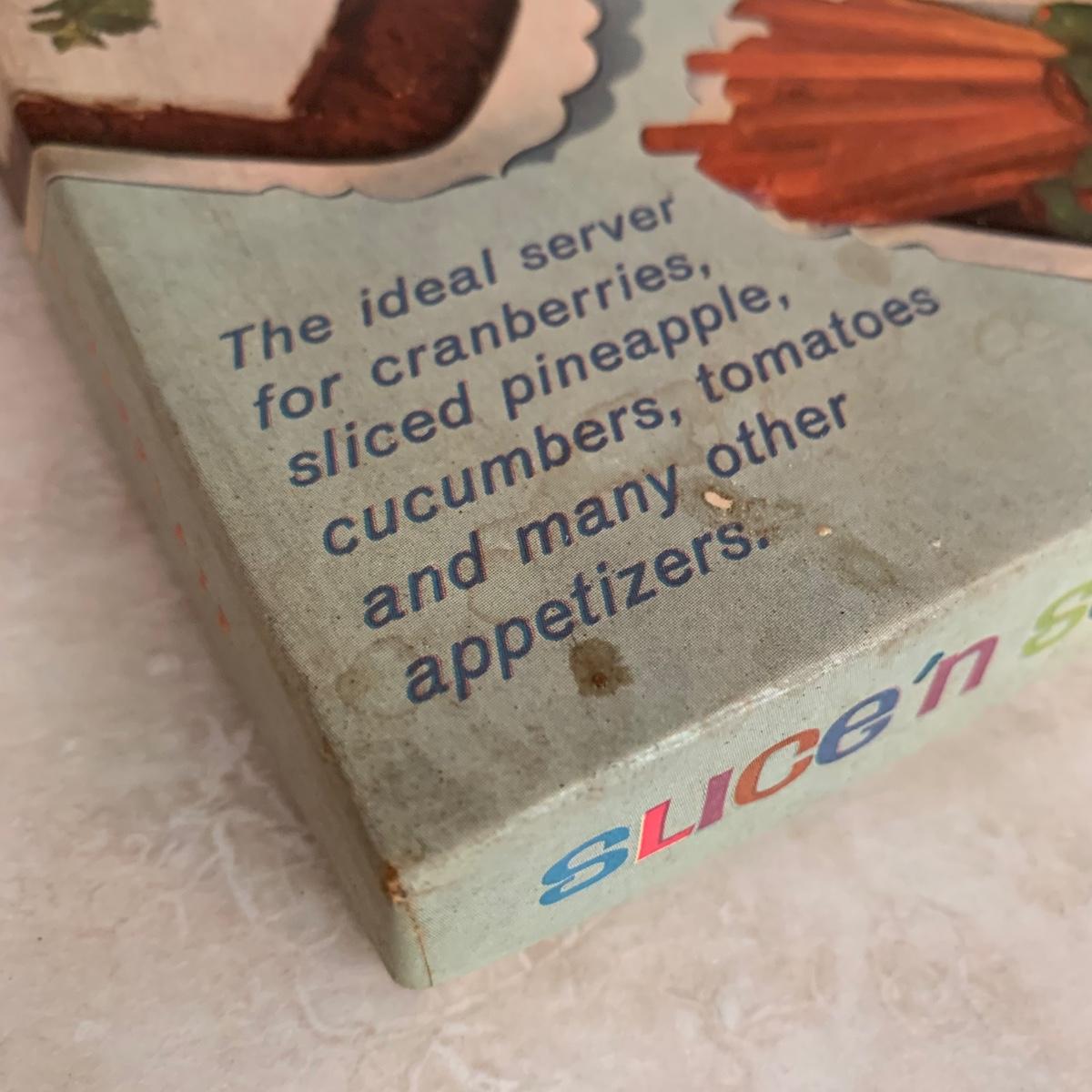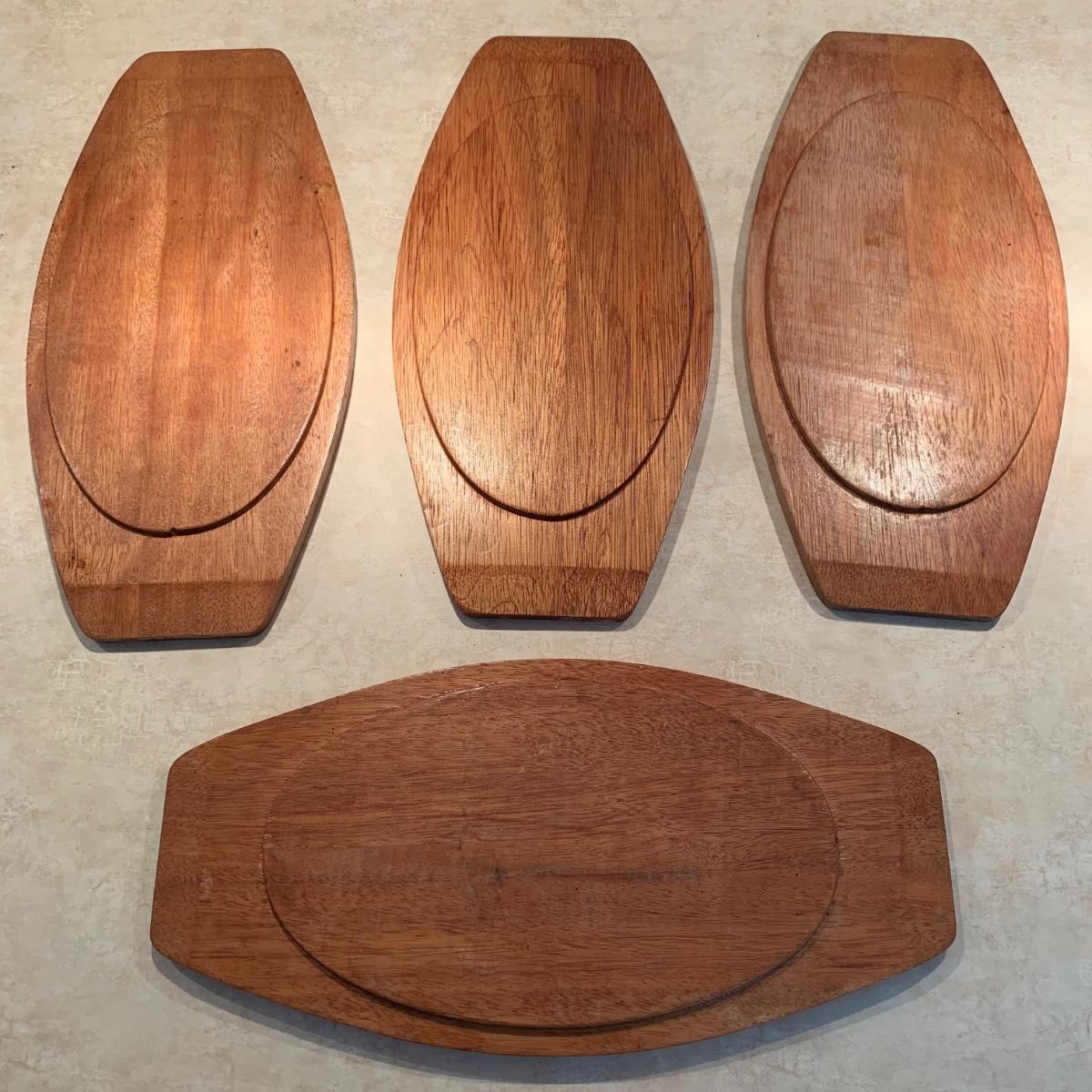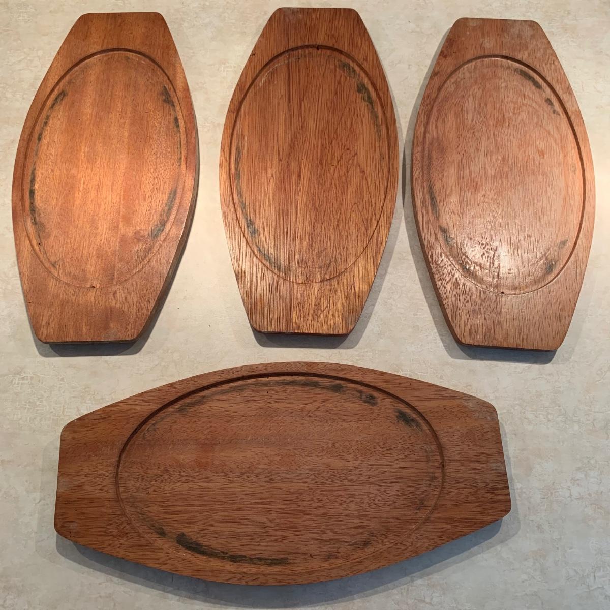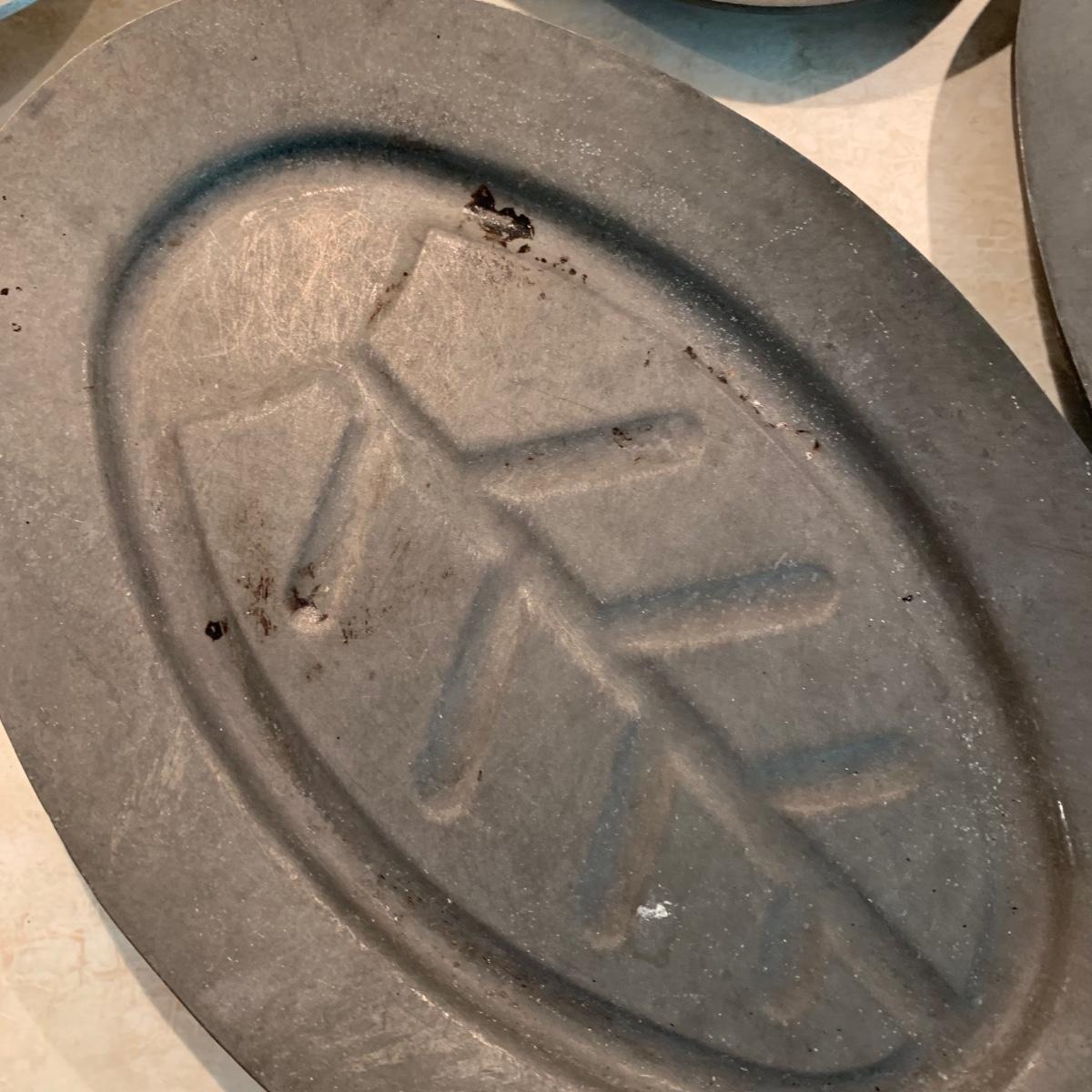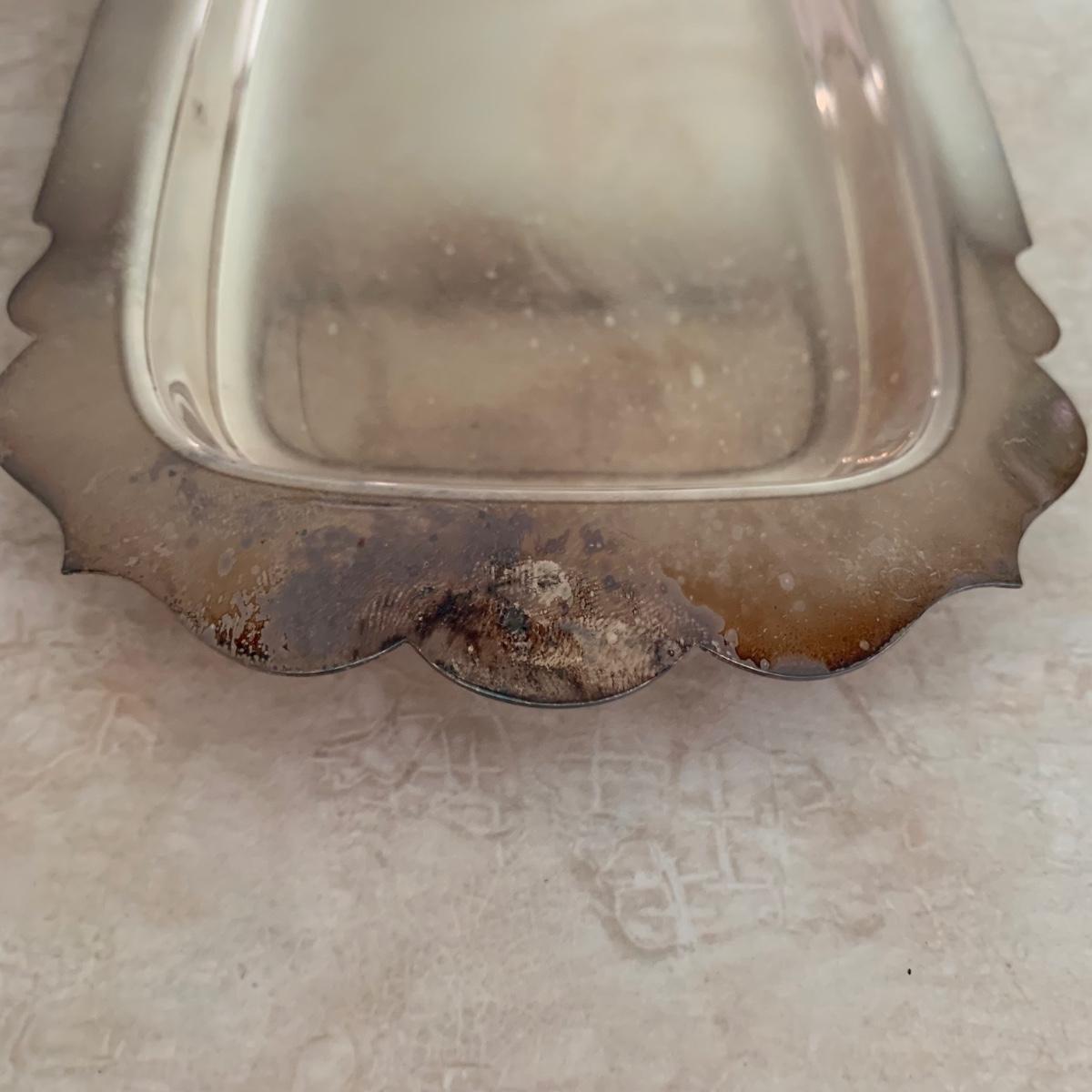 This lot includes a set of five wood trays, a set of two other wood trays, five metal trays, and one silver plated “Slice’n Serve Set”. Both sets of the wood trays measure 13.25” x 6.5”. The metal trays measure 12” x 8”. One of the metal trays is slightly larger and is silver-colored, whereas the others are a slate gray color. The box of the Slice’n Serve Set says it is silver plate. There is some tarnishing on the tray. Shipping available.