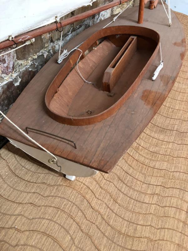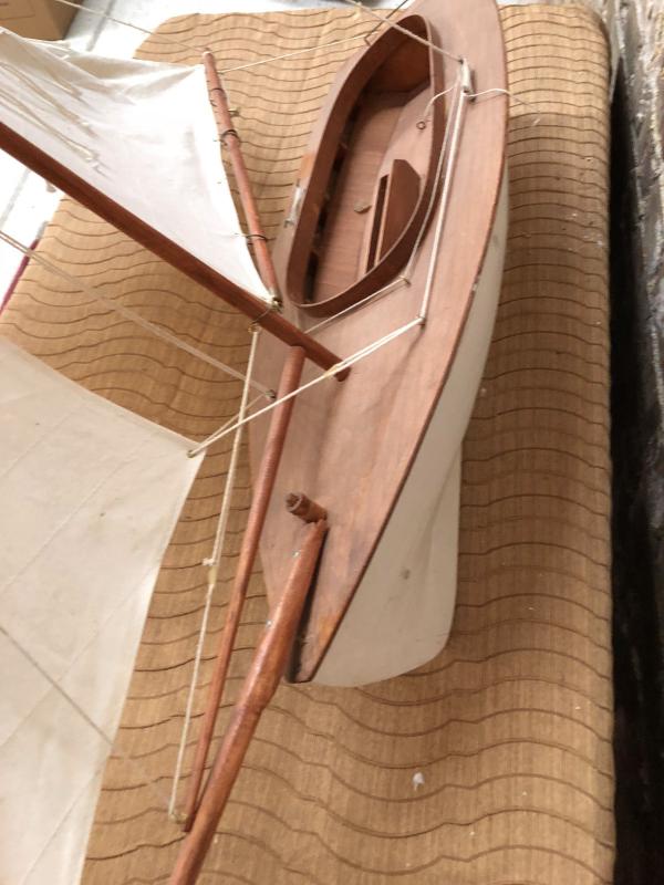 top is loose just needs a spot of glue, made of wood with canvas sails.