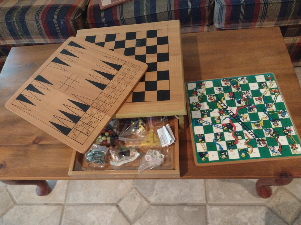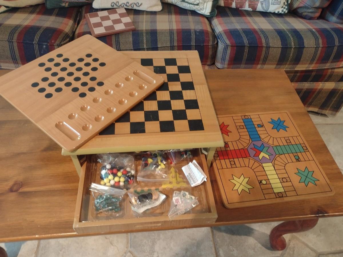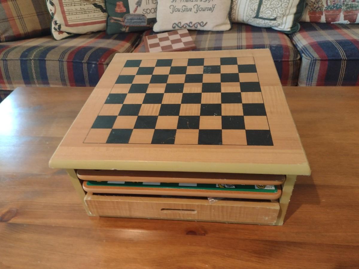 Wood Multi-Board Checkers/Chess Game Set