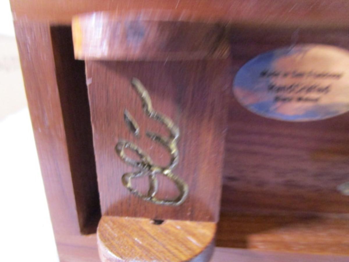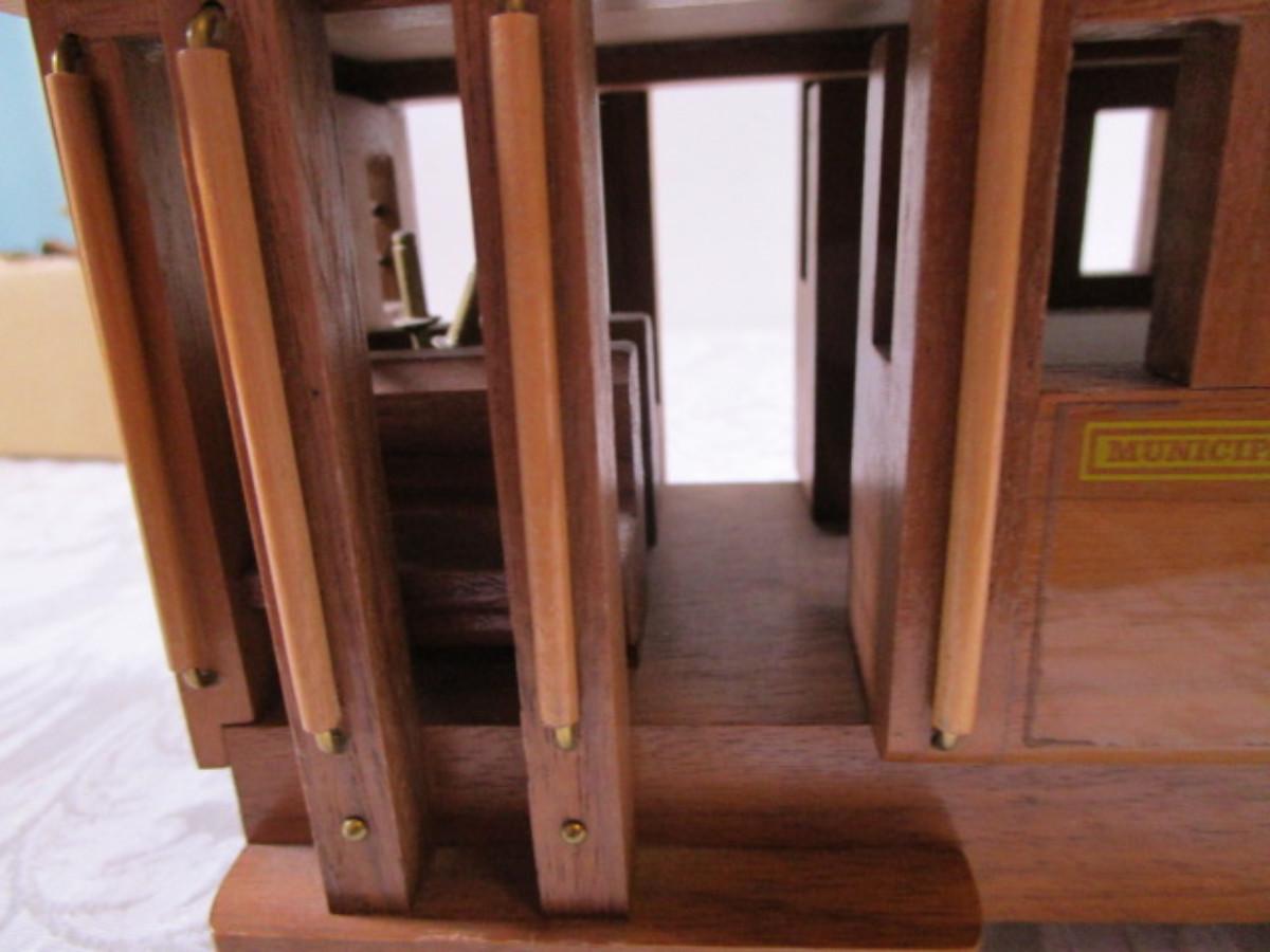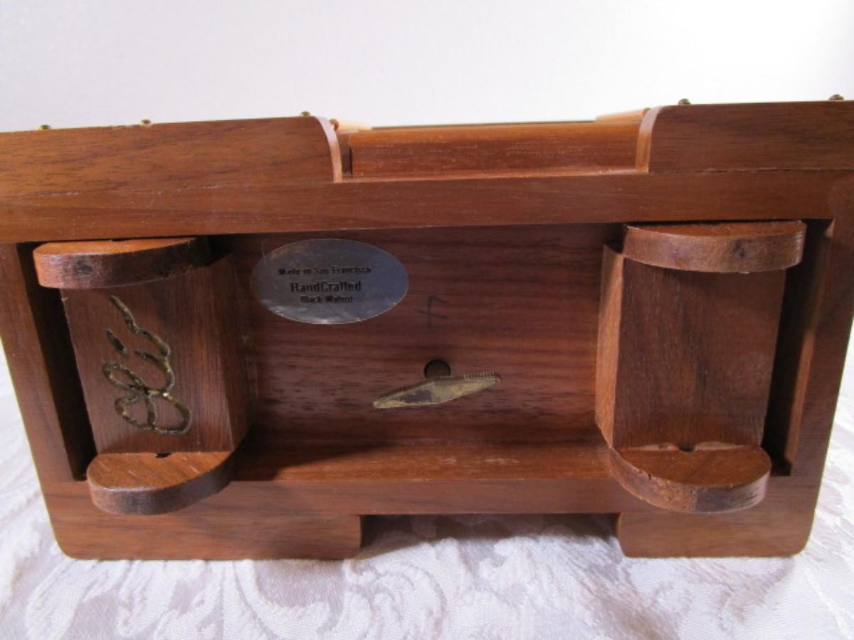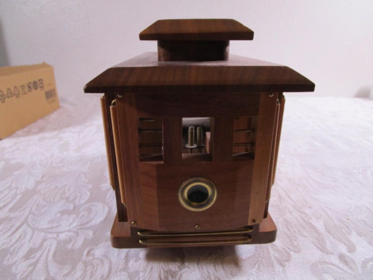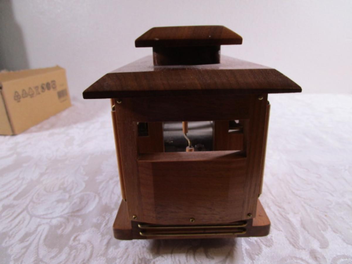 Great detail, music works slowly, plays "I left My Heart in San Francisco", 7-1/2" long x 6" tall x 5-3/4"" wide, made in San Francisco