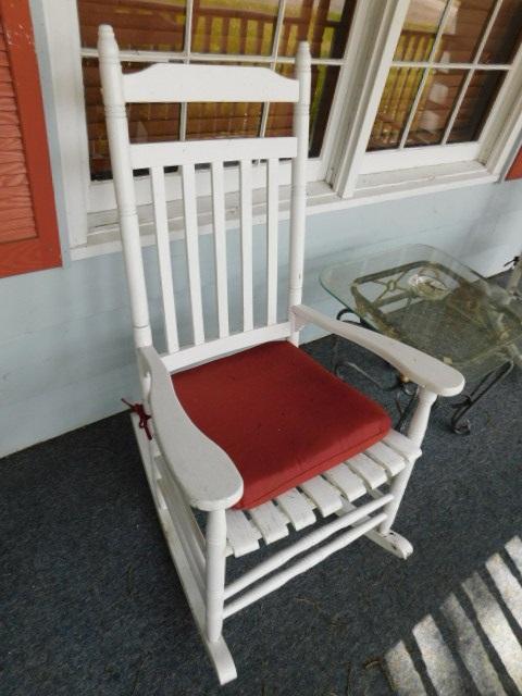 Wood Out Door Porch Rocker High Back in good condition may need cleaning