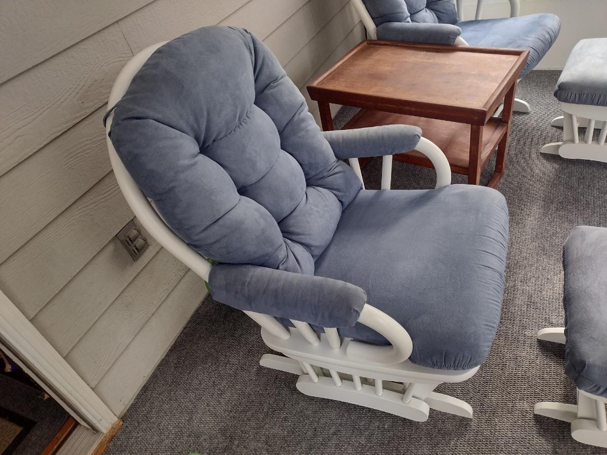 Wood Patio Glider Style Chair with Ottoman and Cushions Choice B