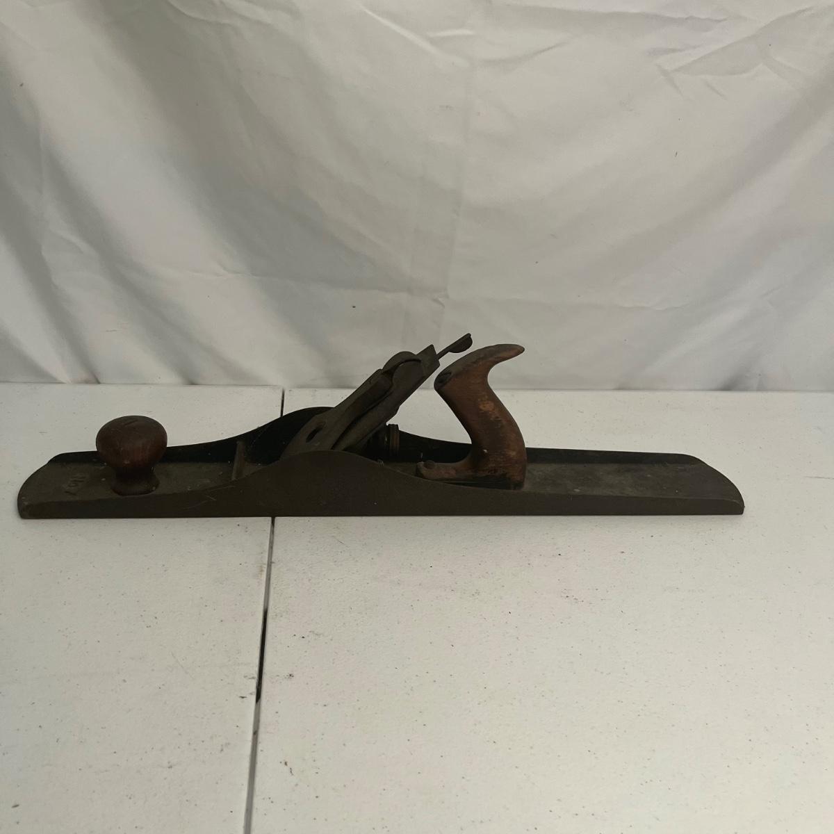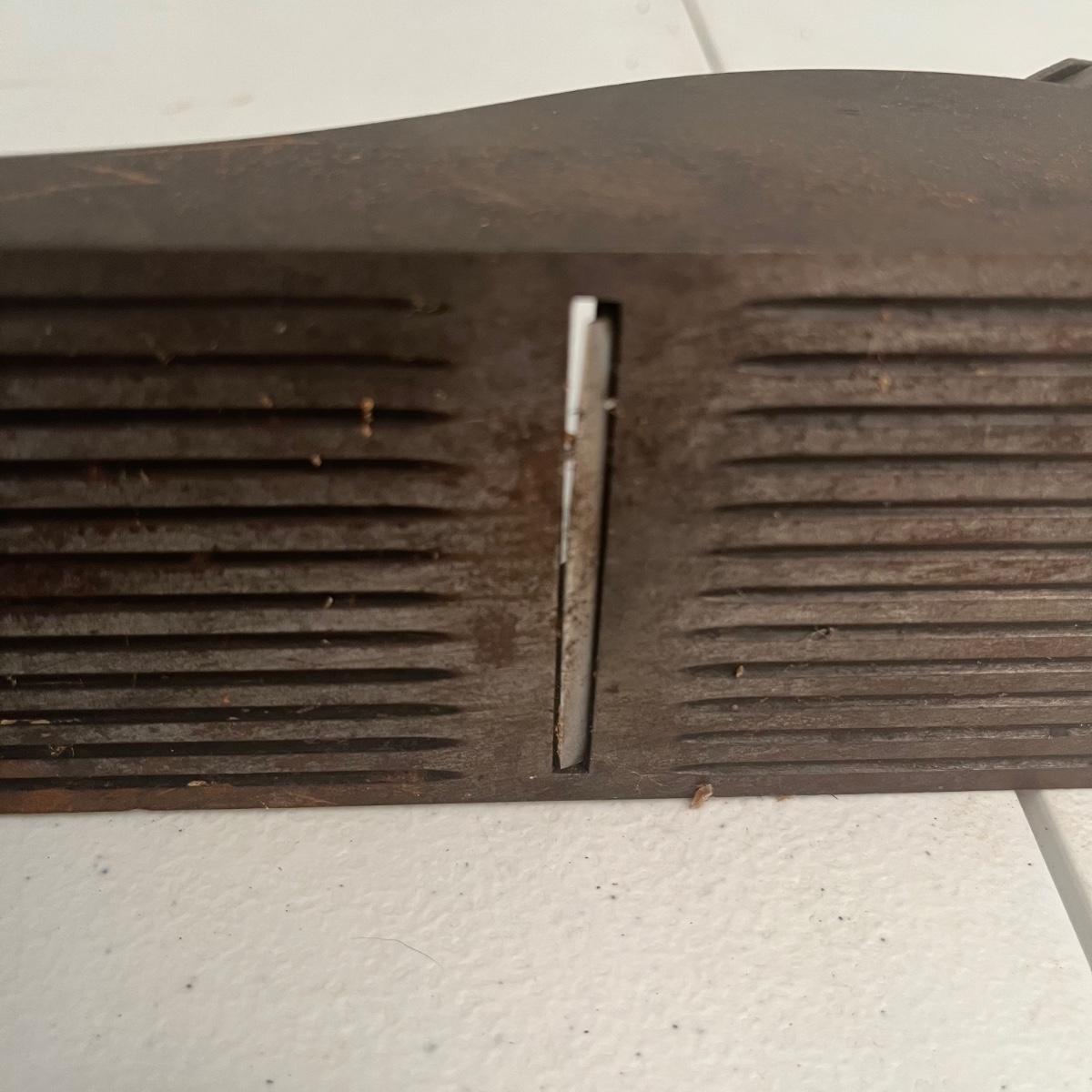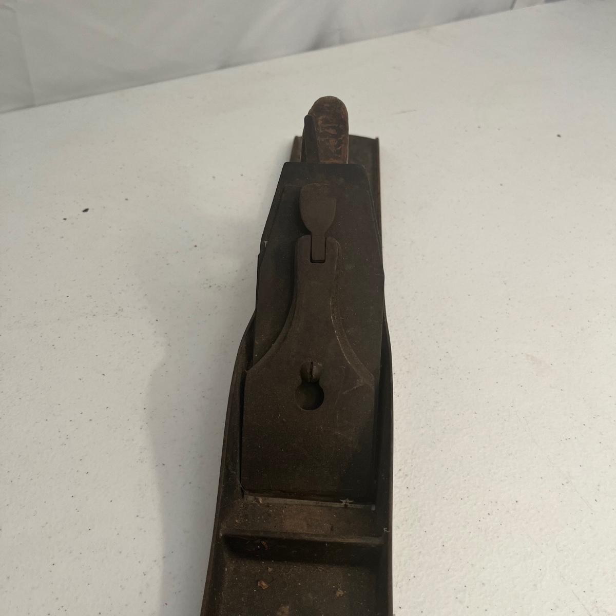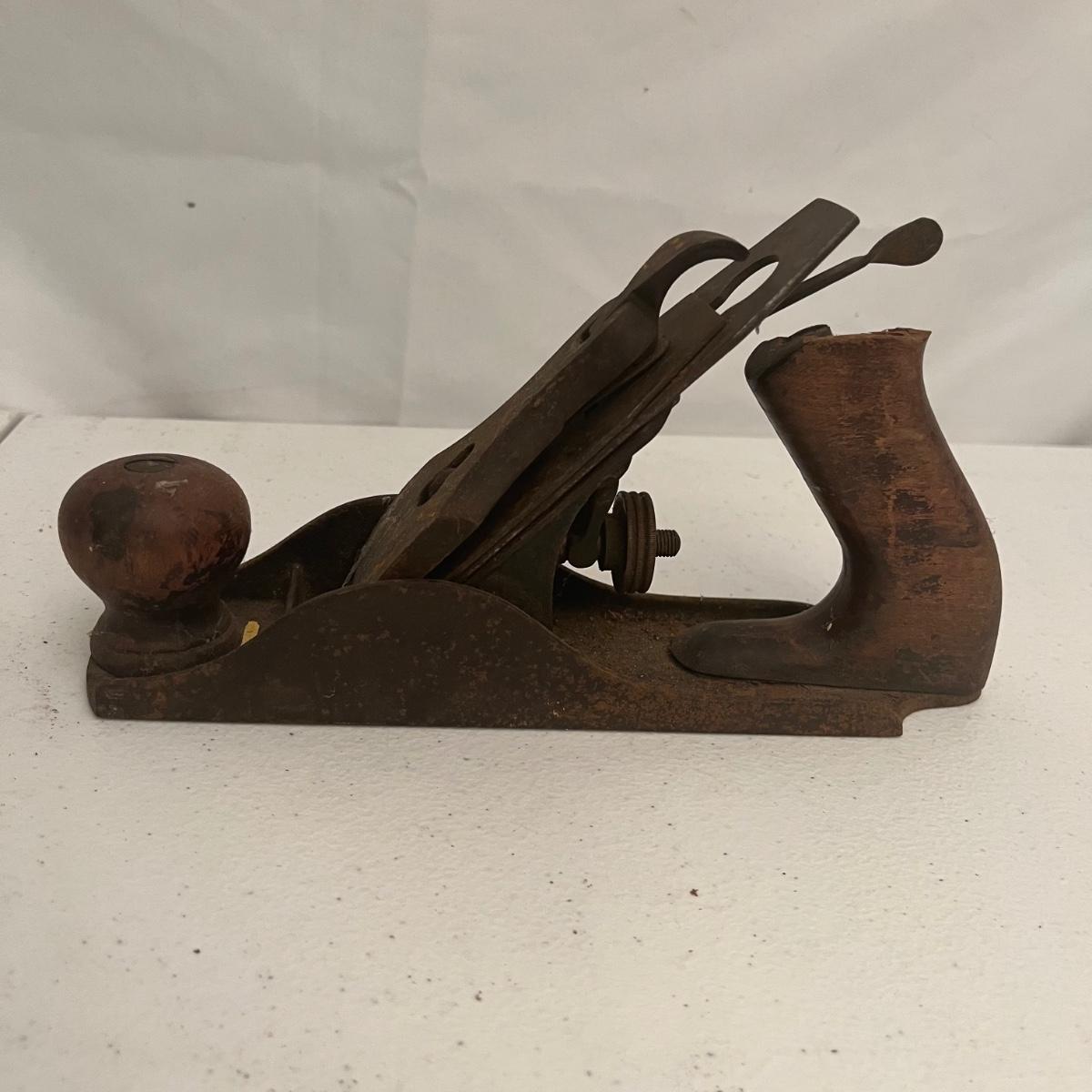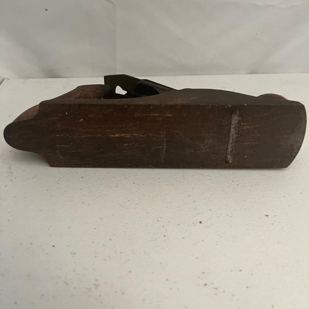 Lot includes large iron wood planer, small iron wood planer and a wooden wooden planer that is missing pieces, see pictures. Large iron planer measures 2.75” x 21” x 5.5”.