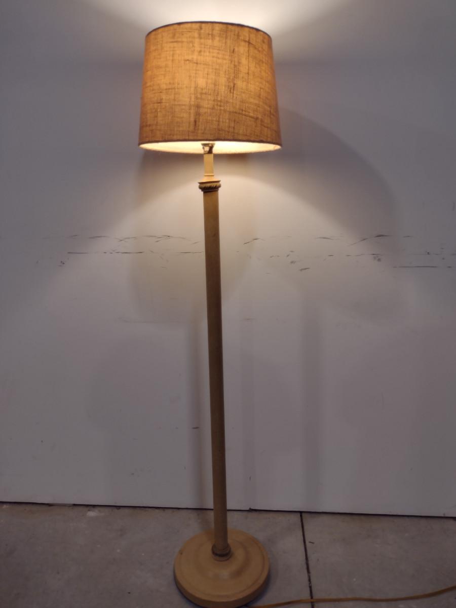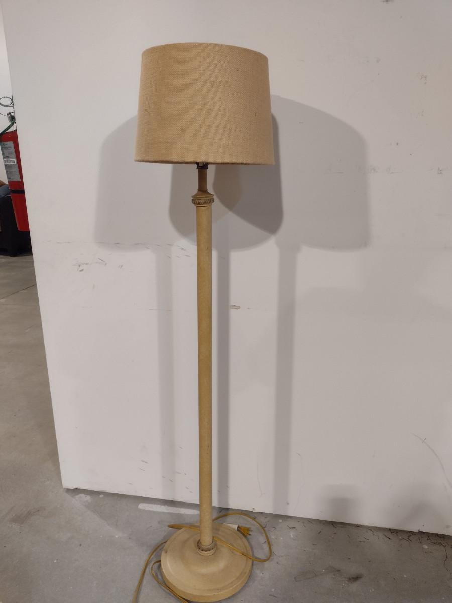 Wood Post Floor Lamp with Burlap Shade- Approx 55" Tall