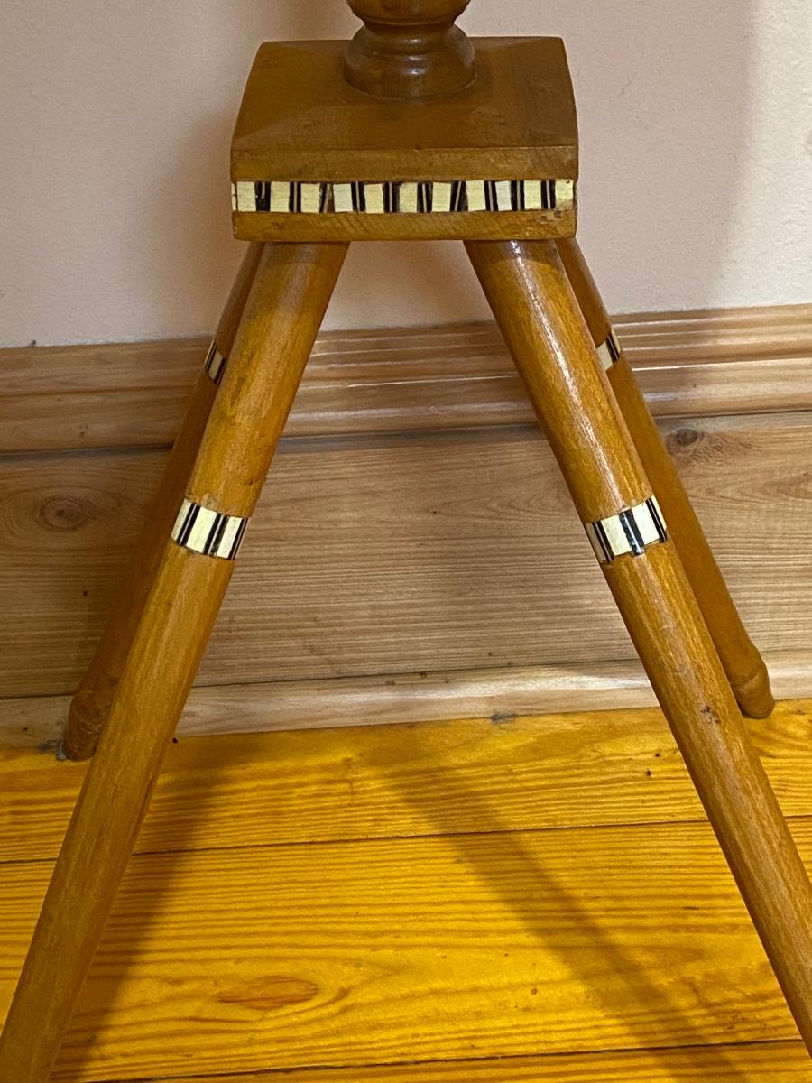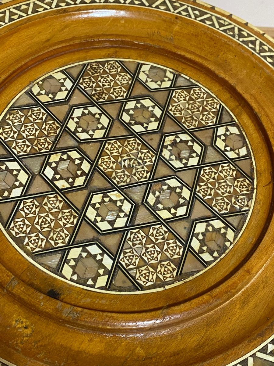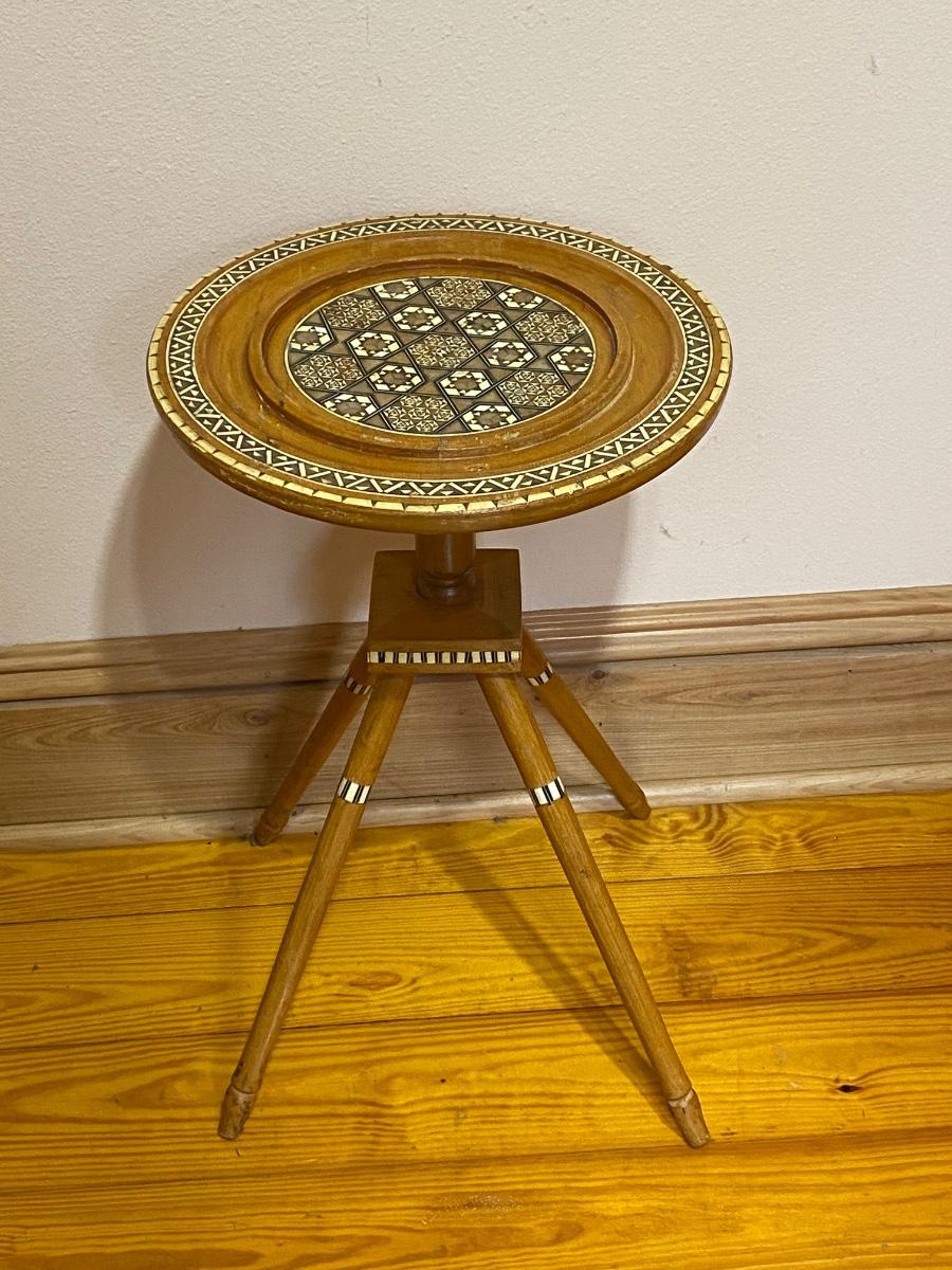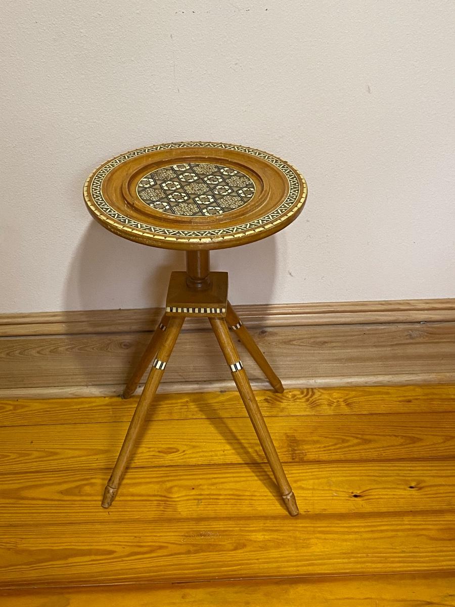Inlaid Small Wood Round Side Table