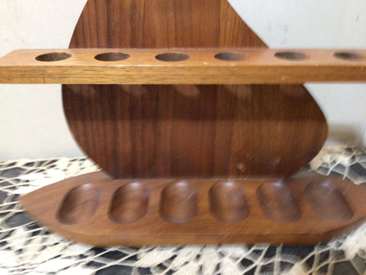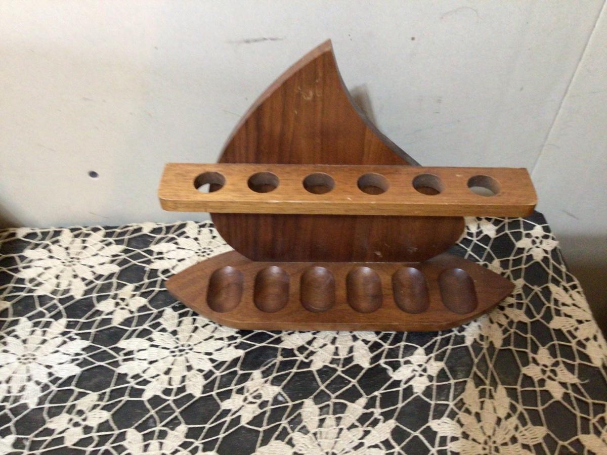 This is a great wood sailboat pipe holder. Holds 6 pipes great cabin decor or any tobacco collector. In great condition some normal wear for it’s age.
