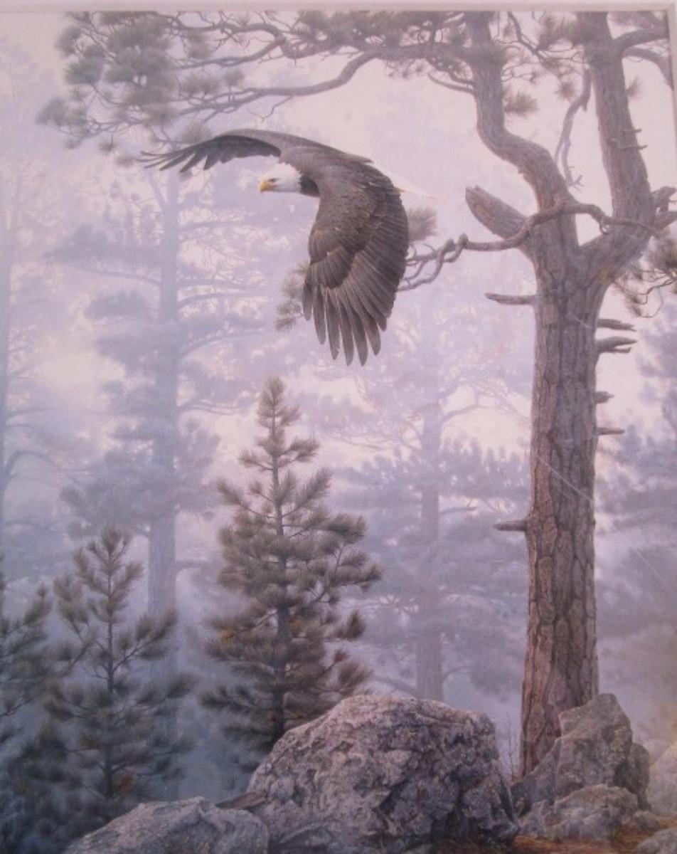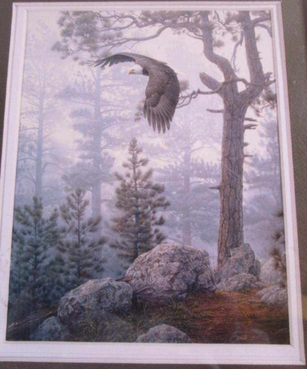 Wood scene picture with eagle