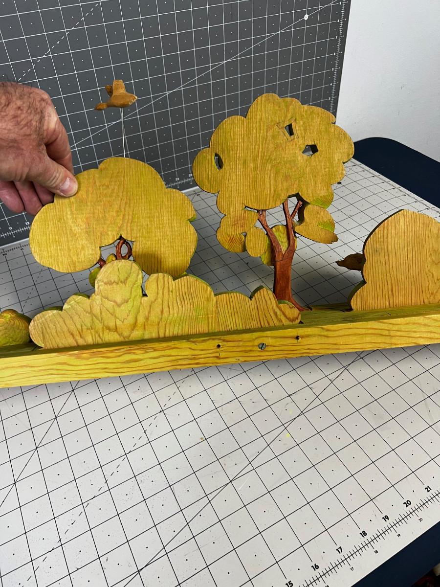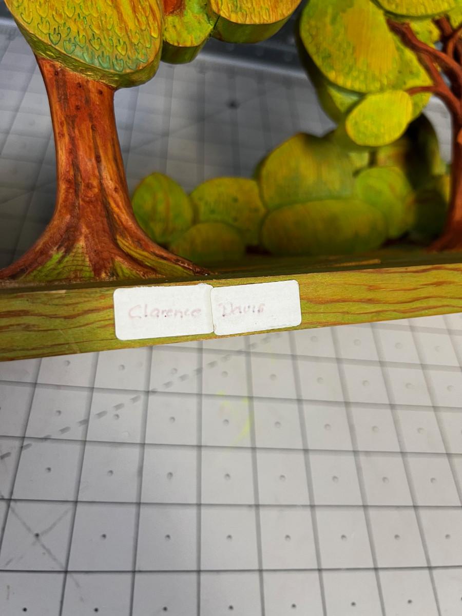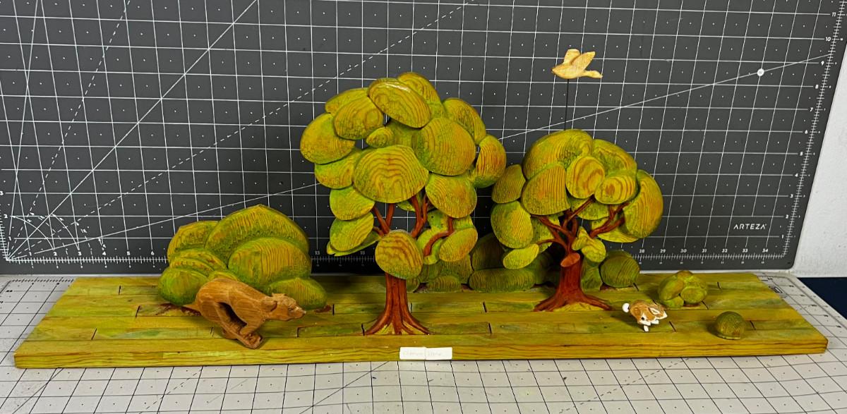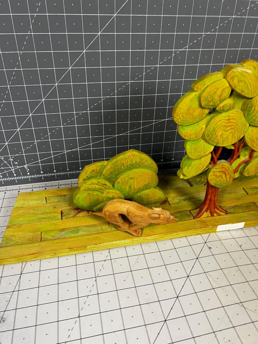 Wood Sculpture Looks To be Hand Crafted Trees, Dog, Rabbit and Duck.