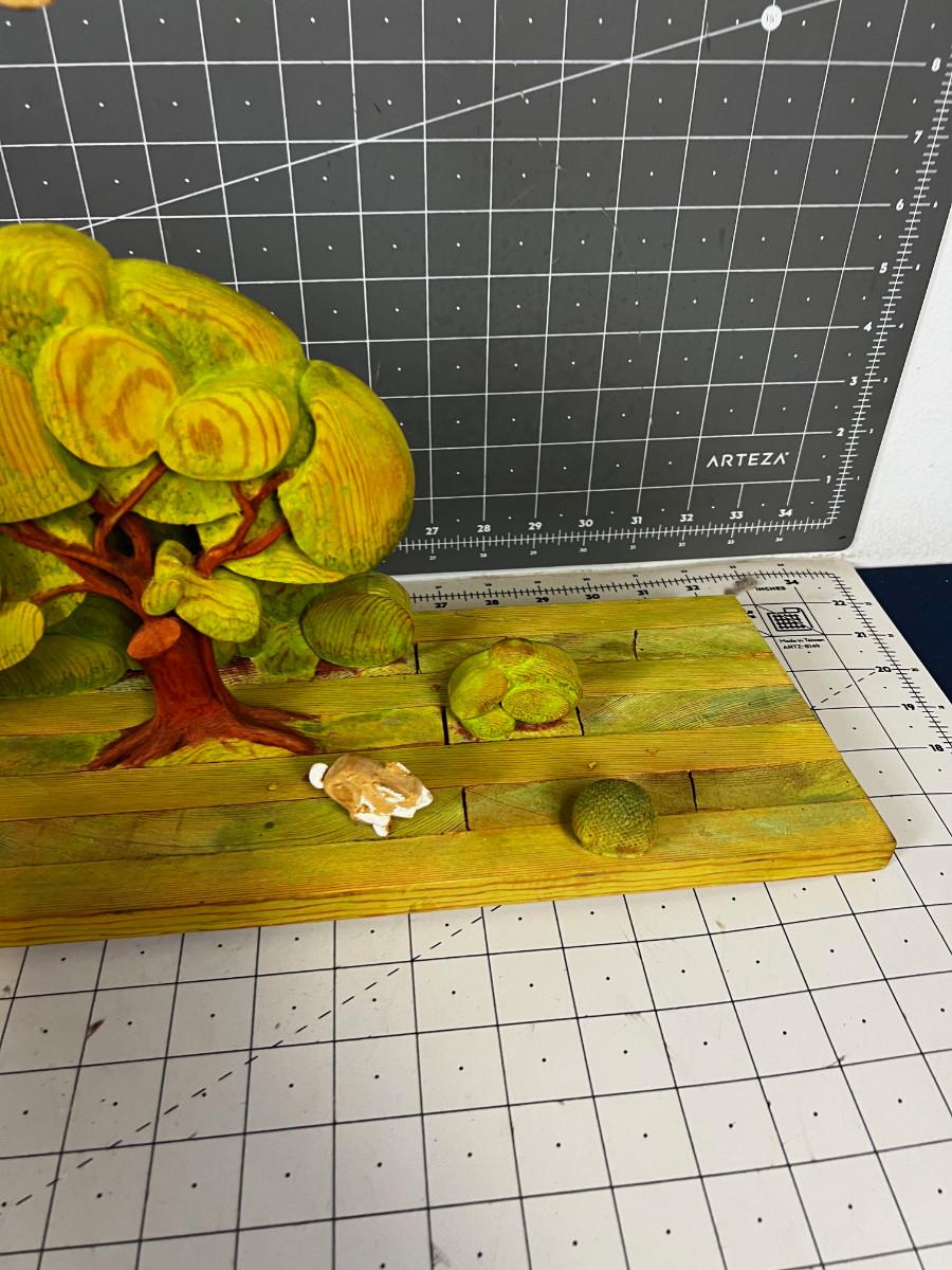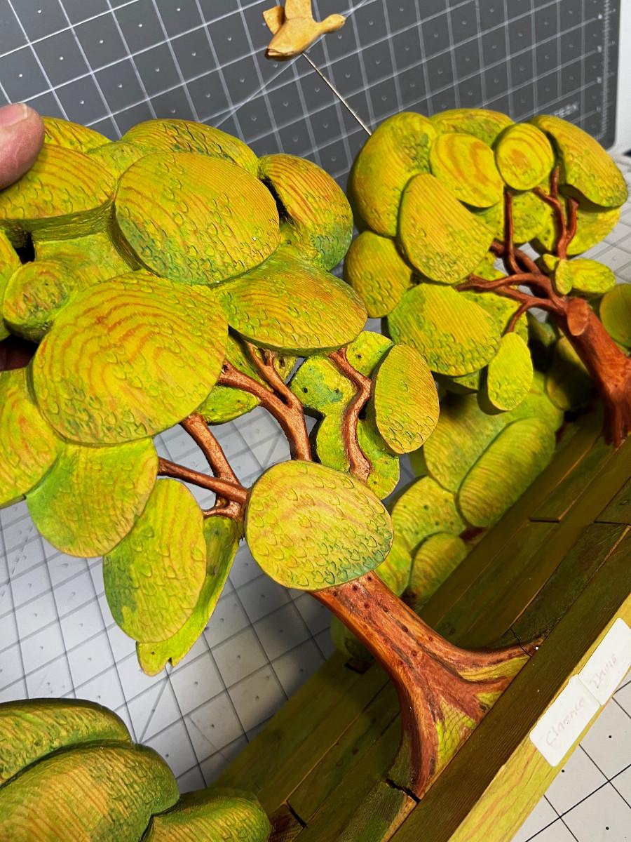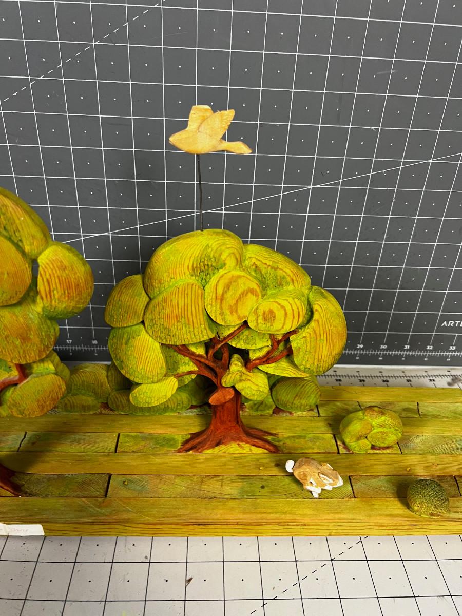 Wood Sculpture Looks To be Hand Crafted Trees, Dog, Rabbit and Duck.