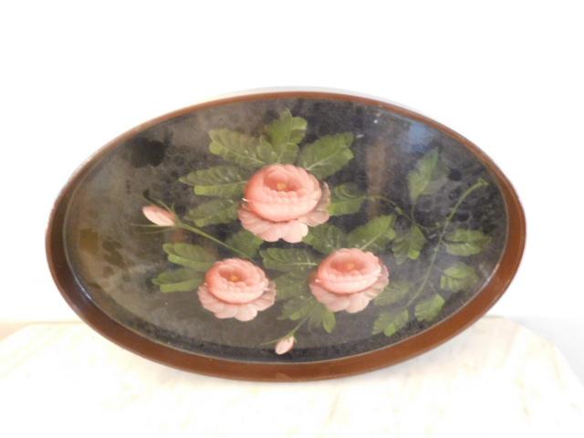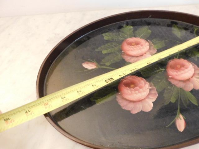 Wood Serving Tray with Rose Accent