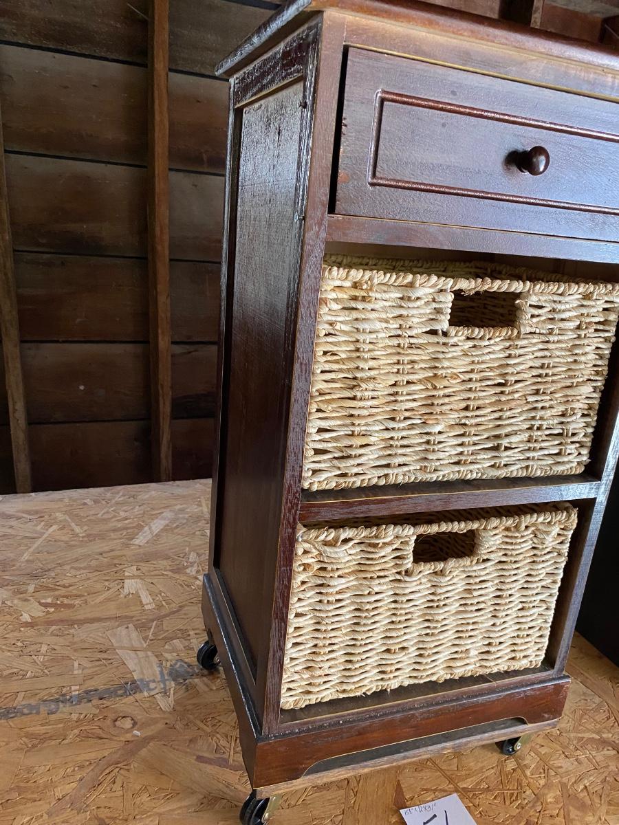 Wood Shelf with Baskets