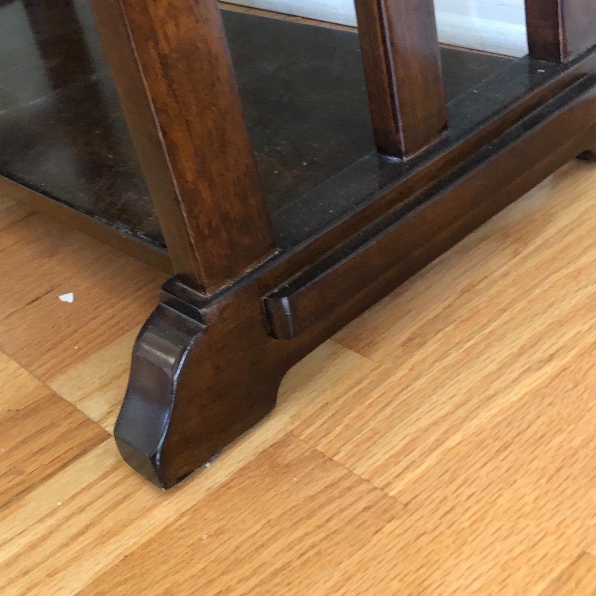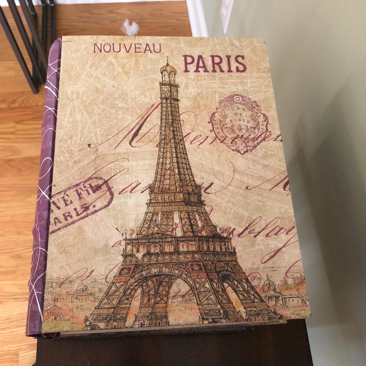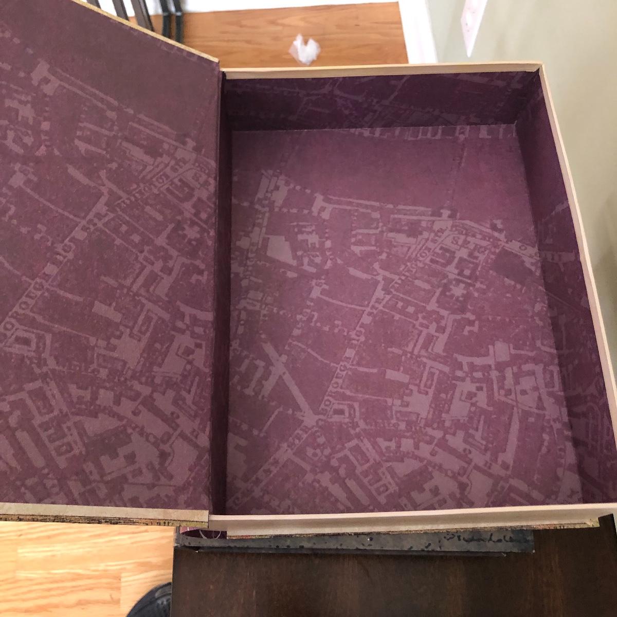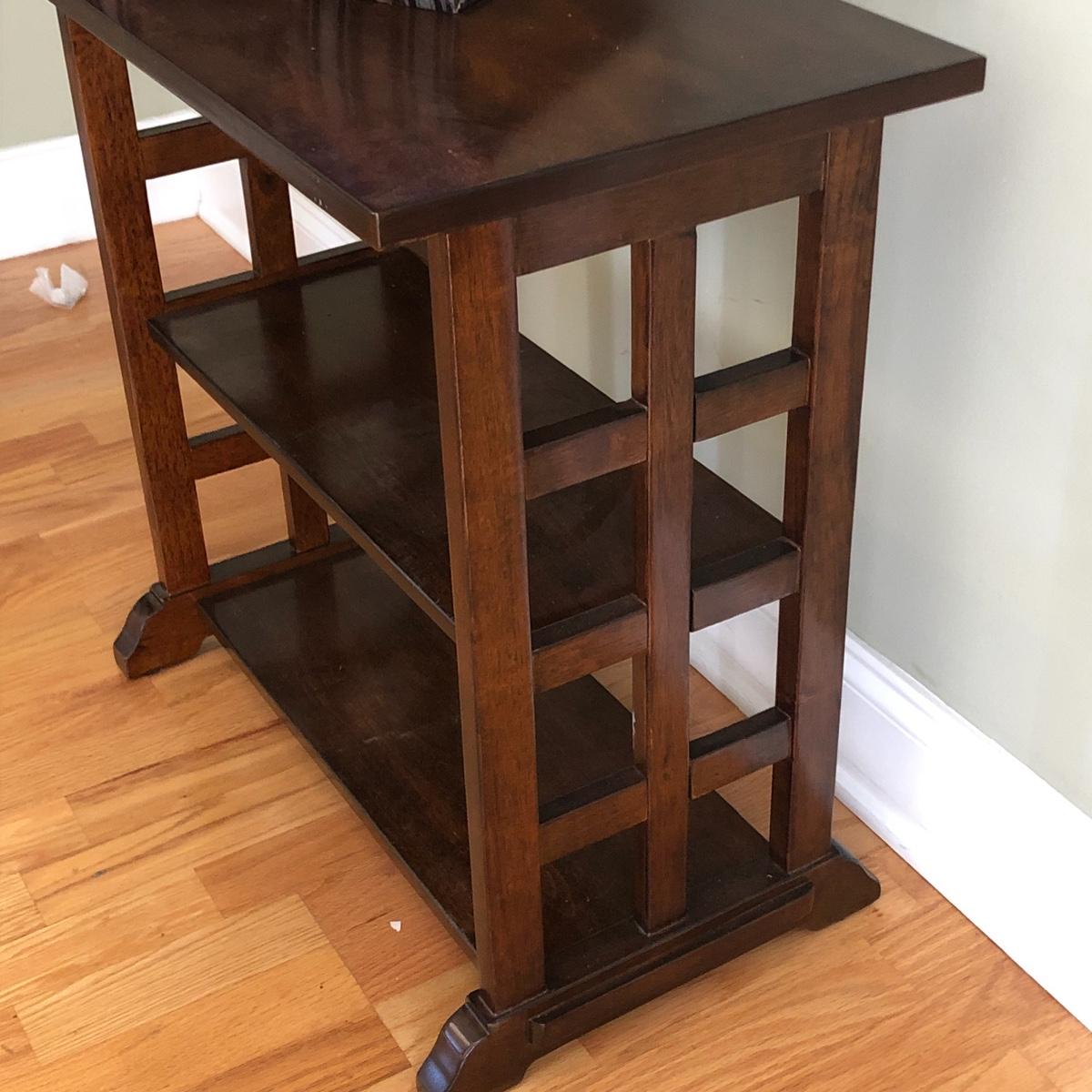This small wooden shelf unit is in good condition and provides two shelves. Also included 4 handsome faux books that are storage boxes.