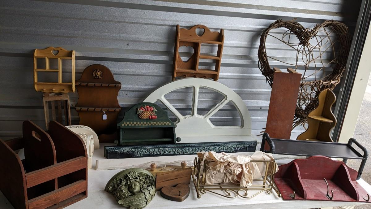 a great mixture of wall shelves of varying sizes and composites. all are in good shape. No shipping. 2616