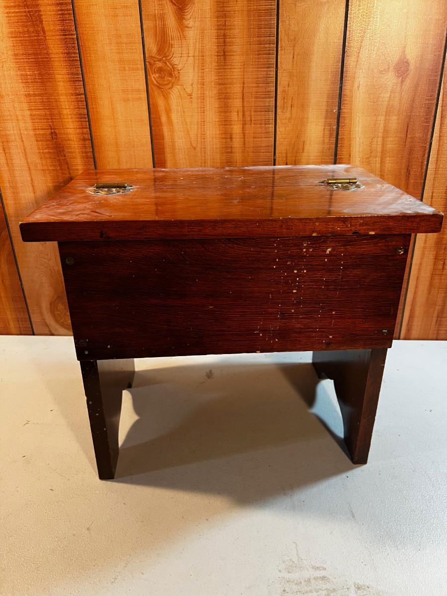 Wood Shoe Stool full of polishes.