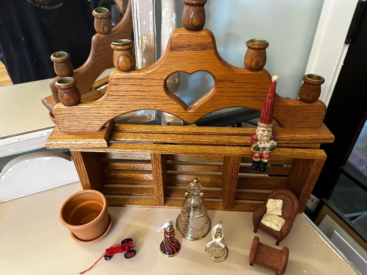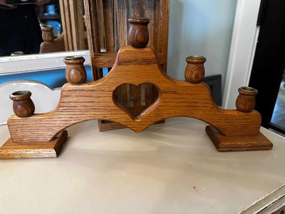 Wood showcase and heart candle holder