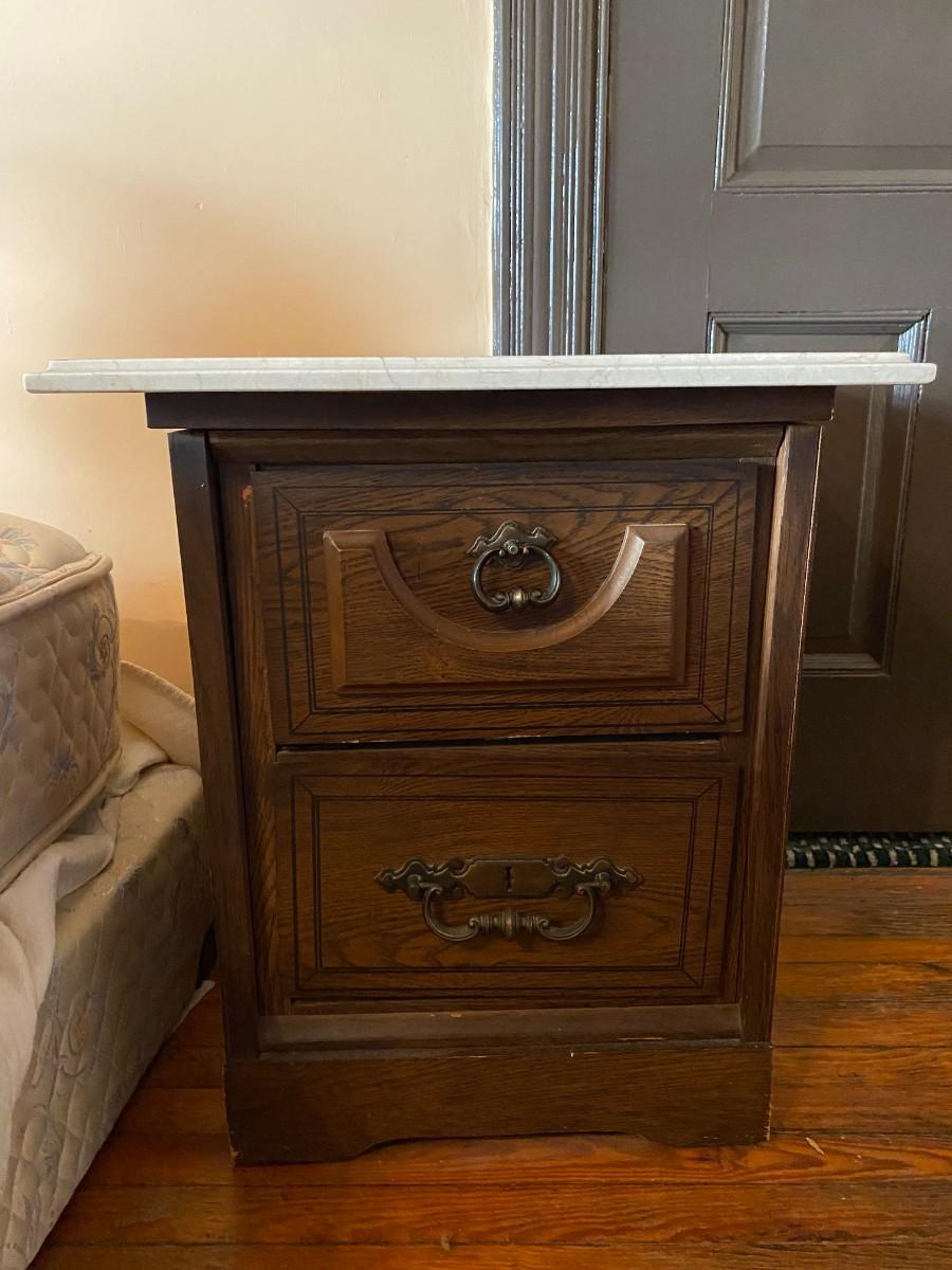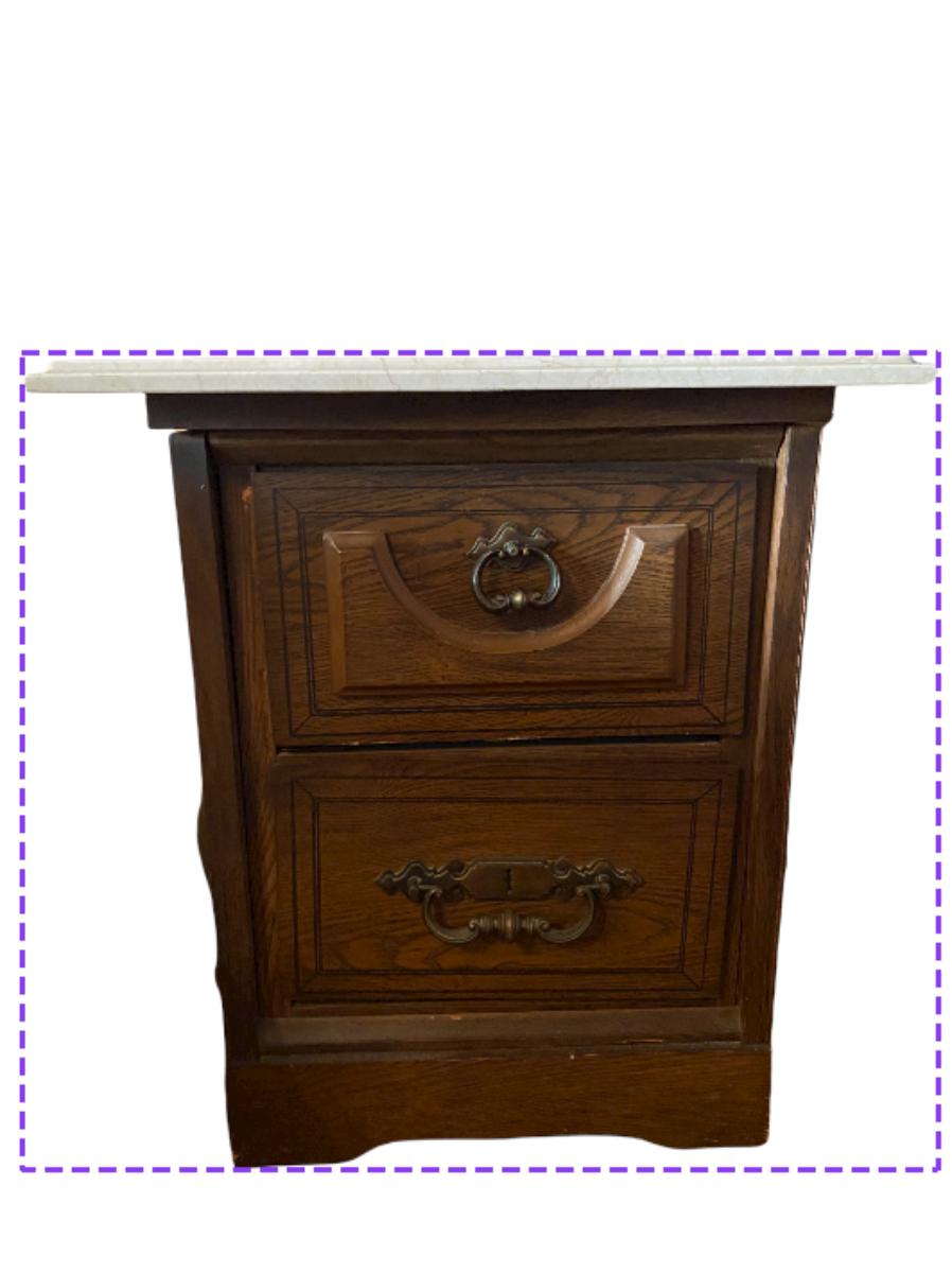 Wood Side Table With Marble Top and Two Drawers - JB11196