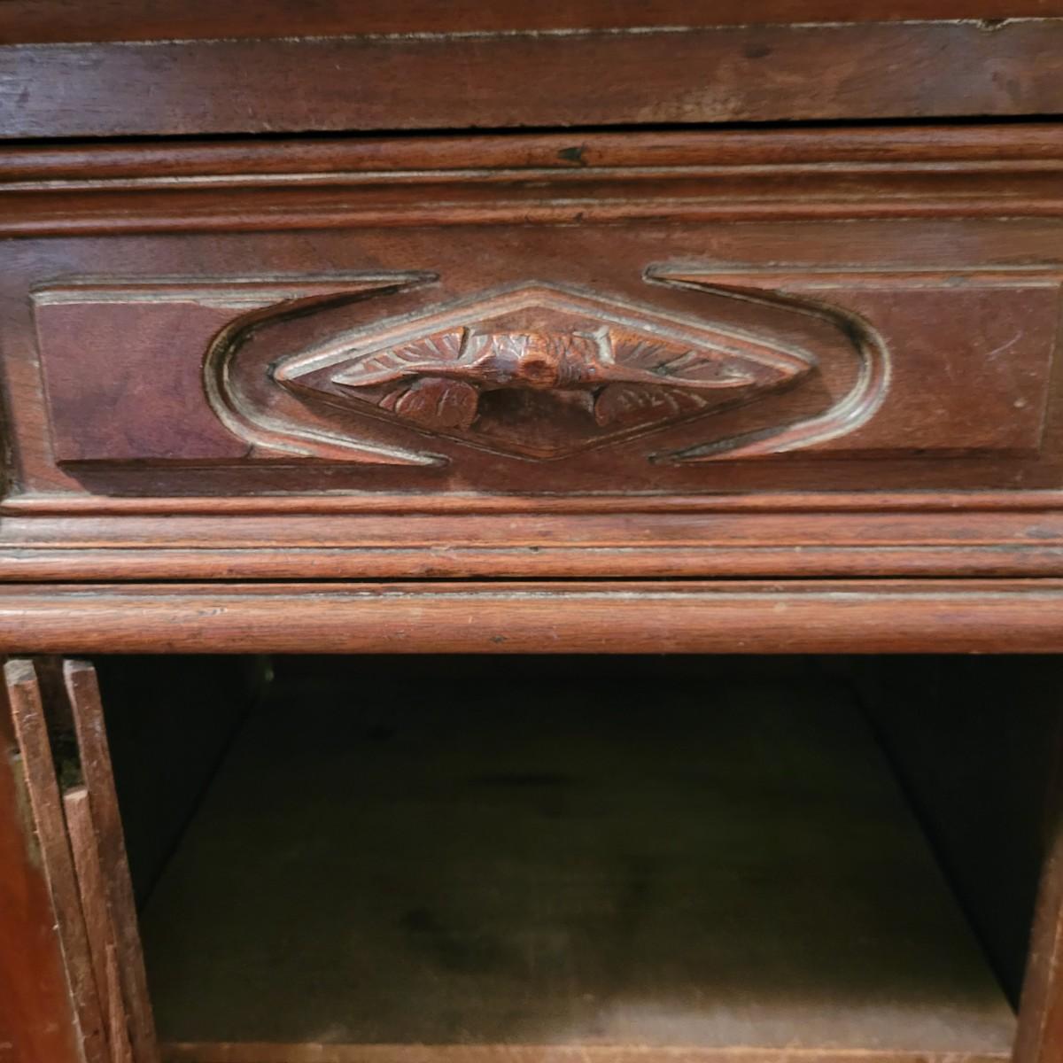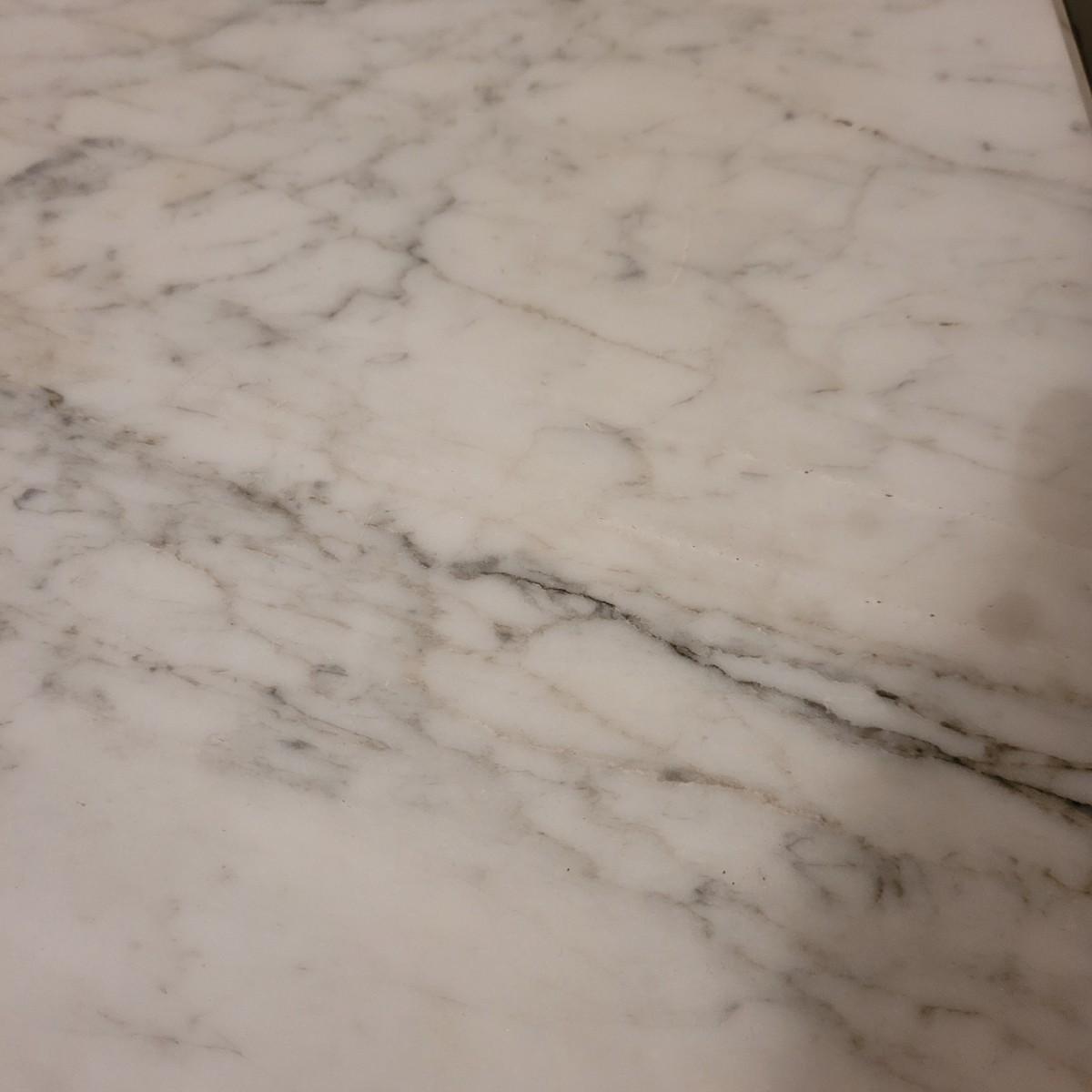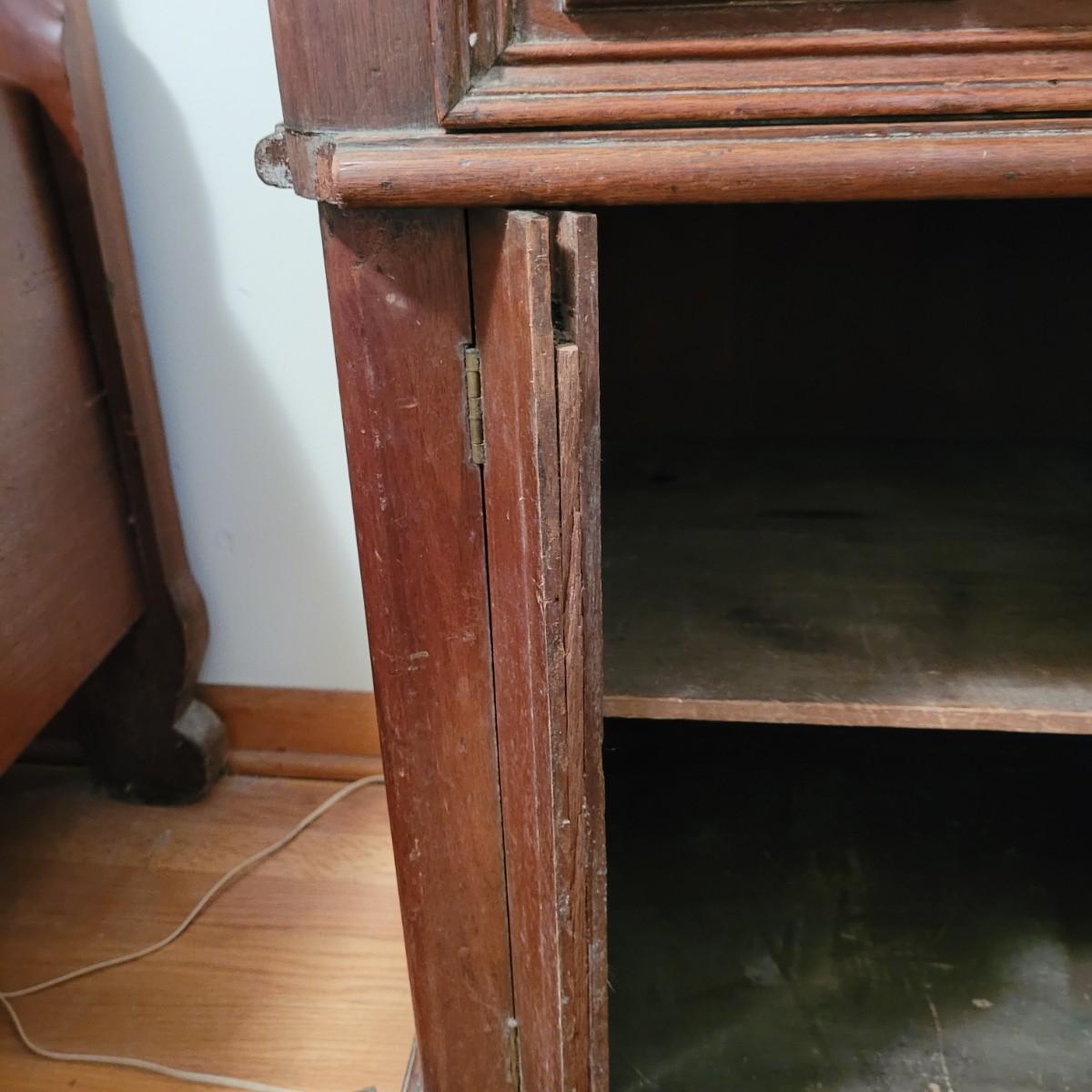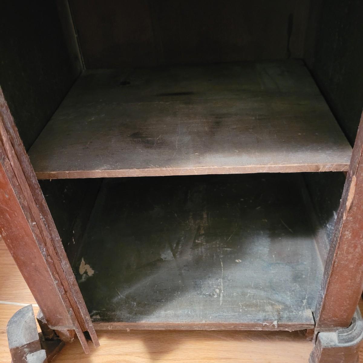 Wood side table with marble top. The wooden base is a great candidate to be refurbished. It has some loose pieces and the door is broken. Marble top not attached. The marble top is in very good condition. The table measures approximately 18.5"L x 20.5"W x 30.5"H. Local pickup only.