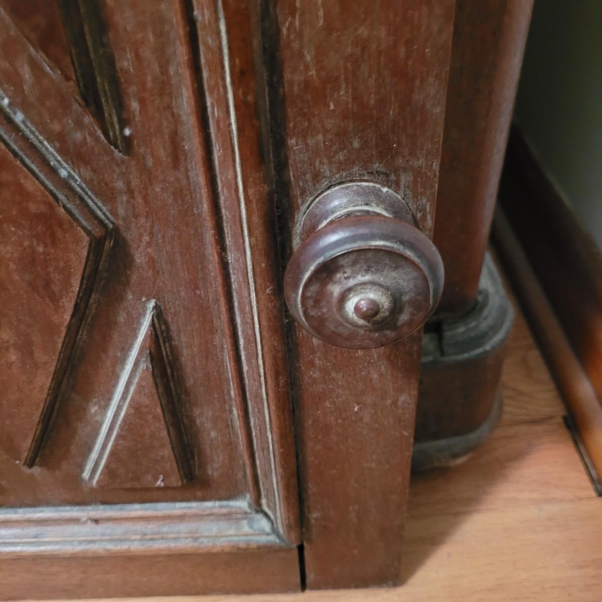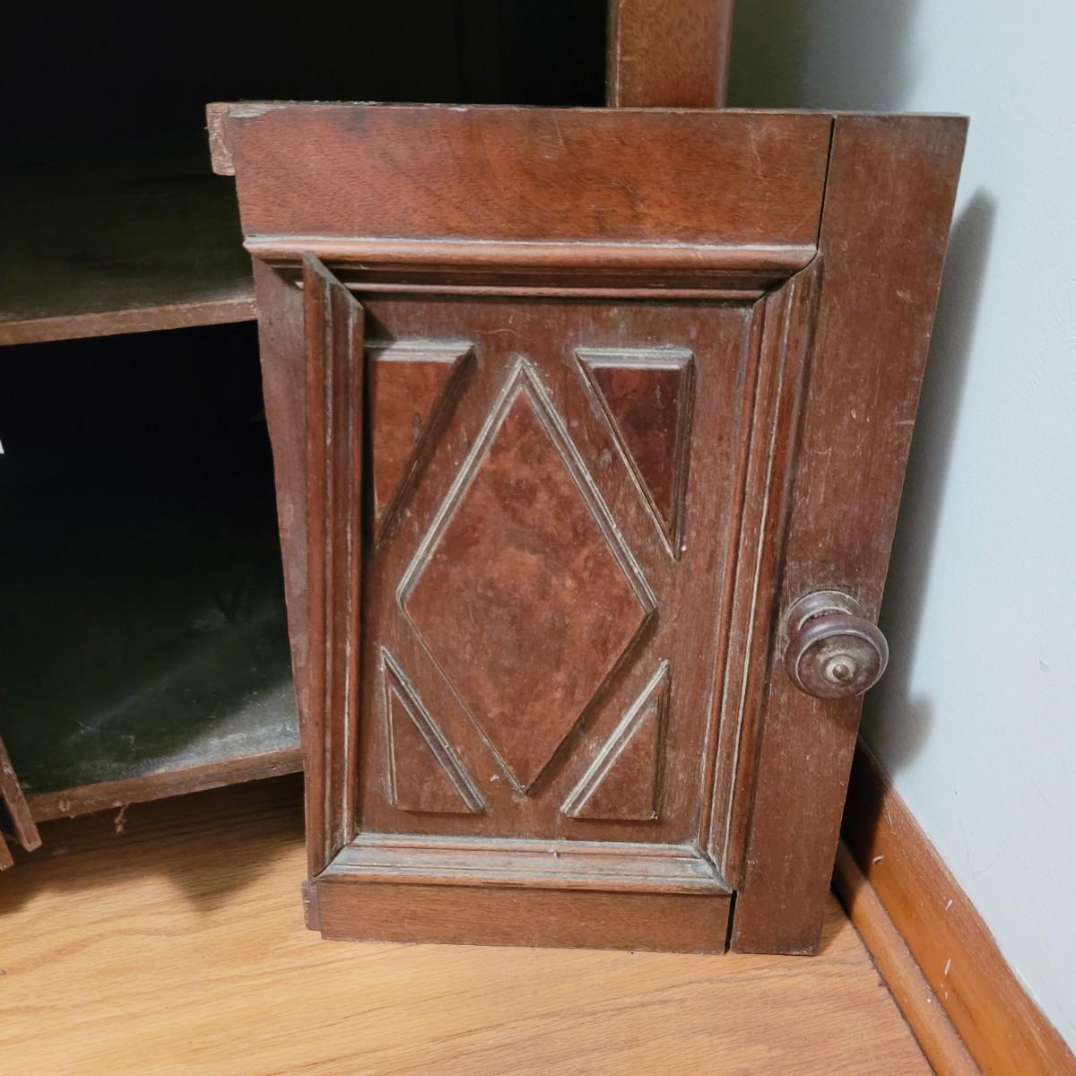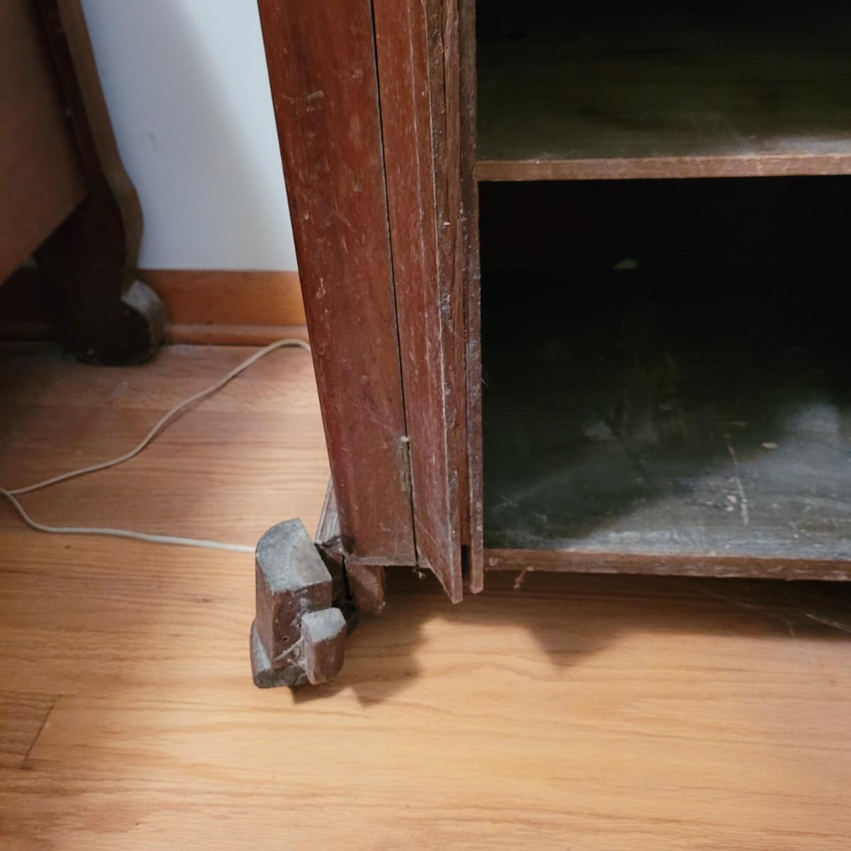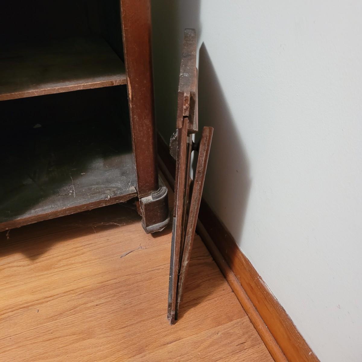 Wood side table with marble top. The wooden base is a great candidate to be refurbished. It has some loose pieces and the door is broken. Marble top not attached. The marble top is in very good condition. The table measures approximately 18.5"L x 20.5"W x 30.5"H. Local pickup only.
