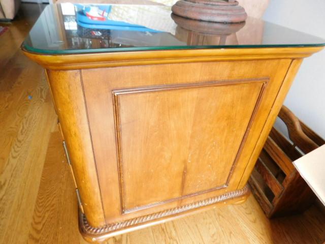 Wood Side Table with Protective Glass Top:  20" x 26" x 25 1/2"- Choice #2