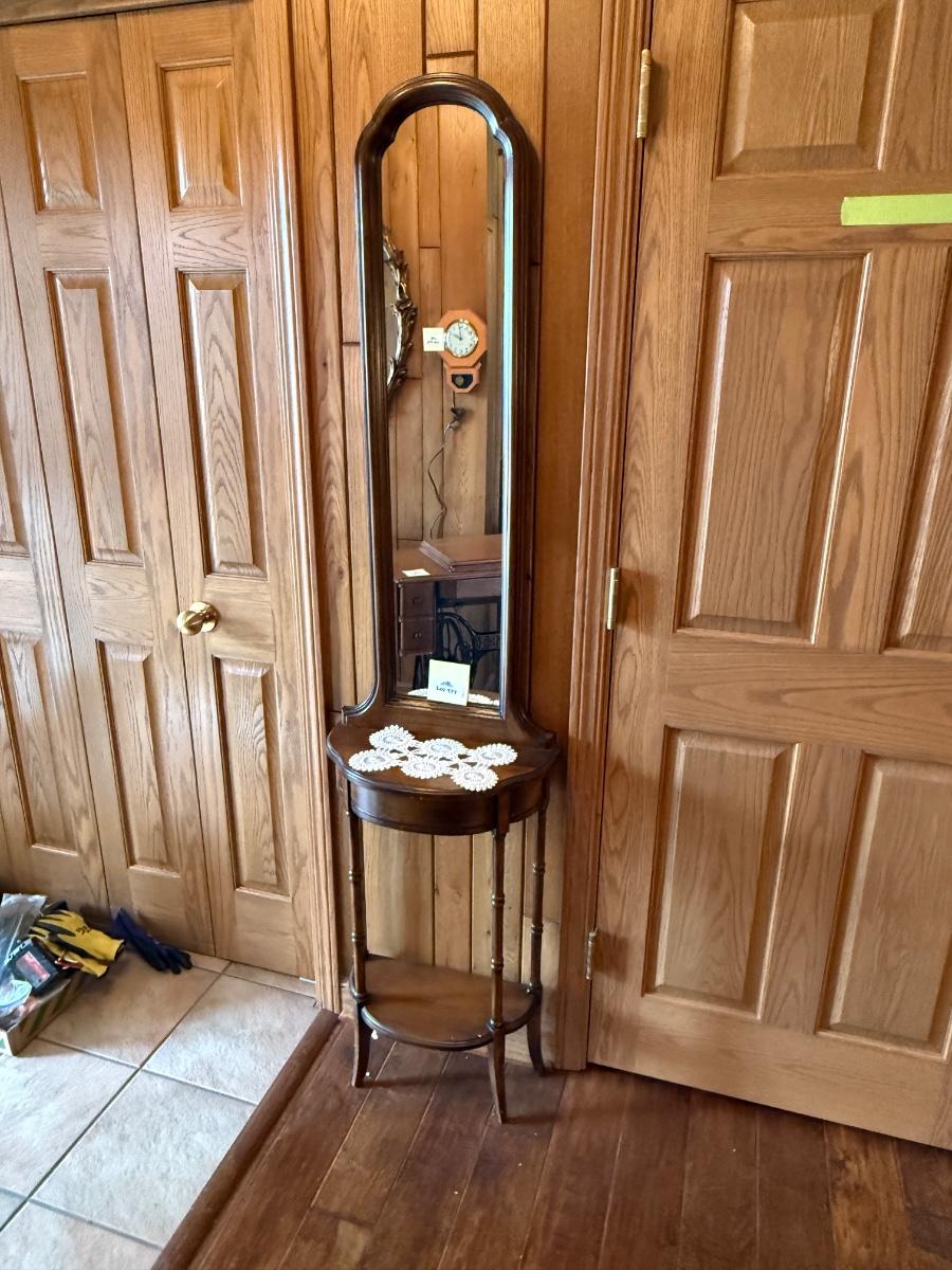 Wood skinny Mirrored Hall Tree 73”t x 17”w x 9.5”d