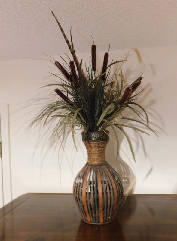 Wood Slat and Rope Home Decor with Cattail Filler is a large and pretty piece. Very impressive