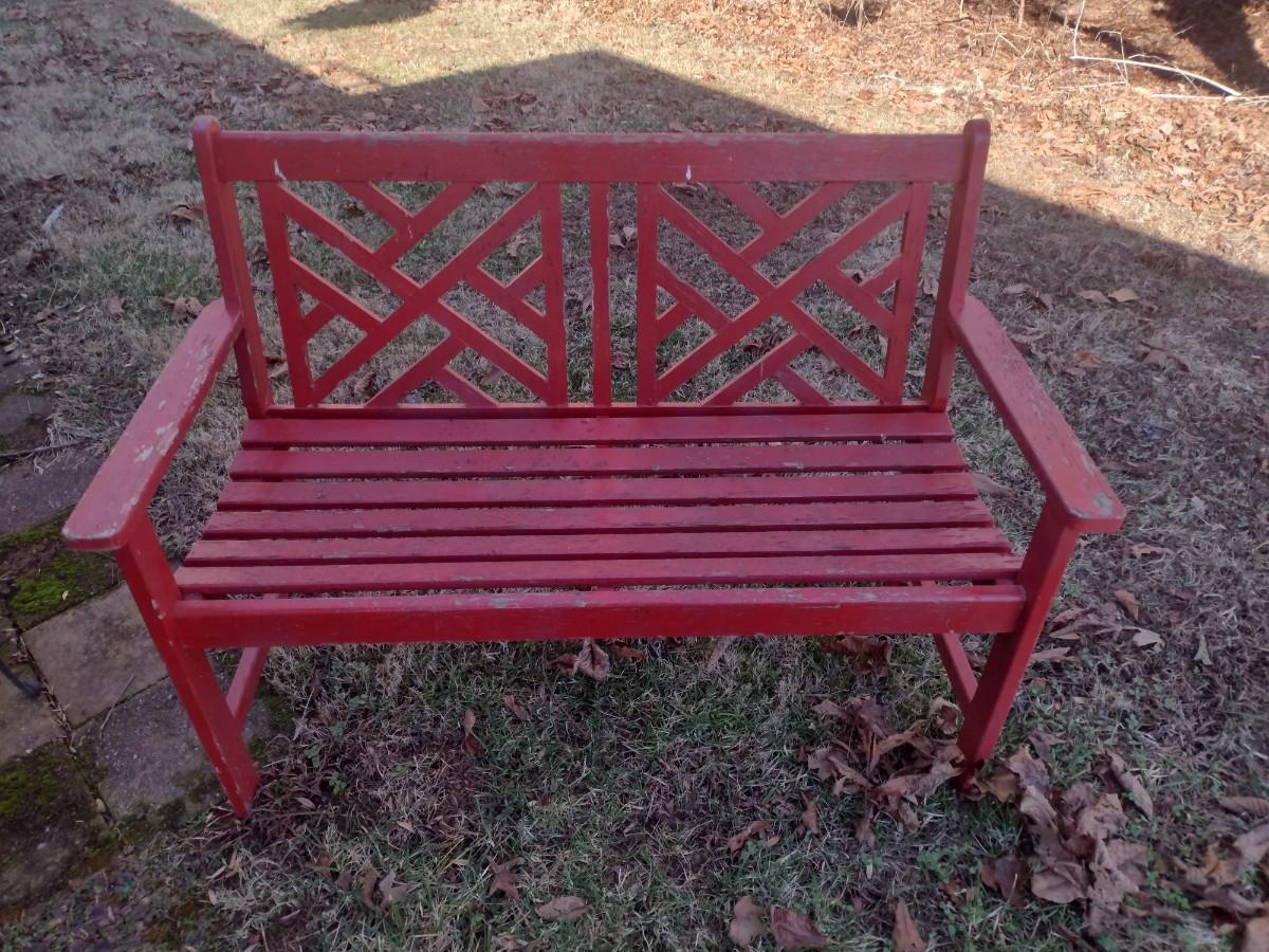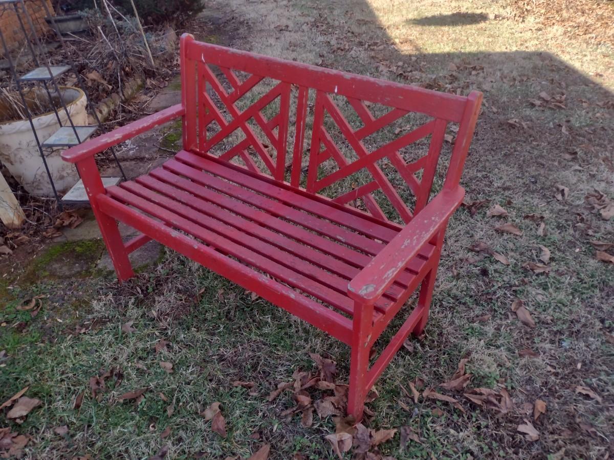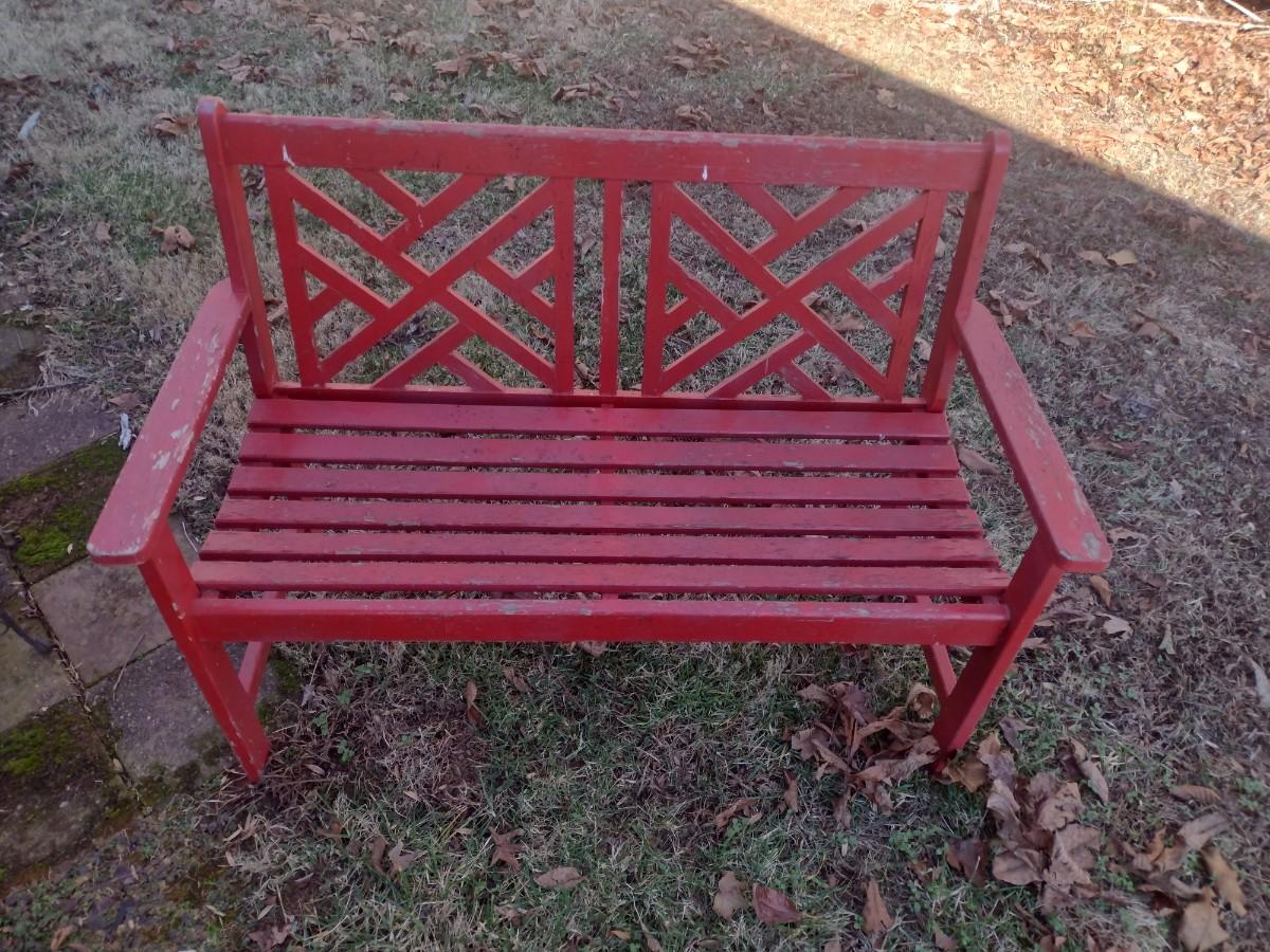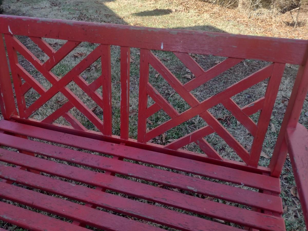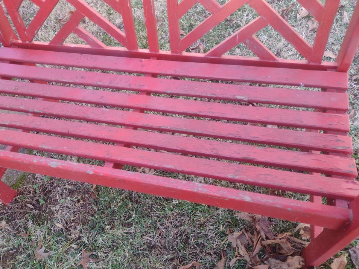 Wood Slat Garden Bench Red Finish