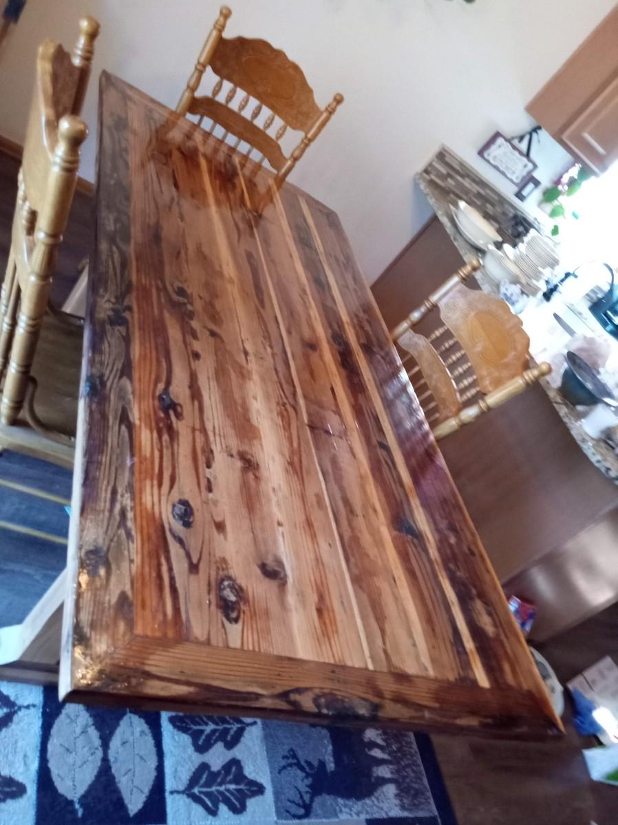 TABLE TOP HAS A THICK COAT OF POLY 73" X 35'