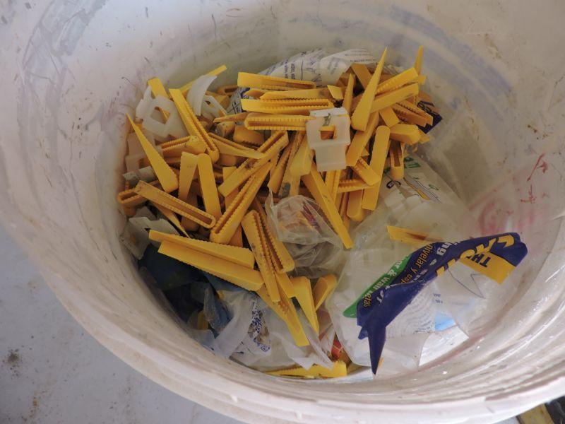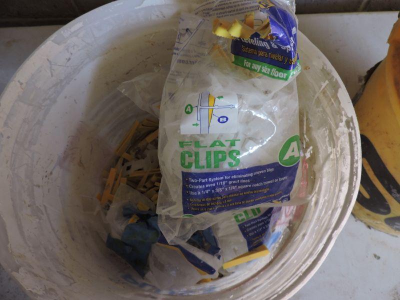 Spacers and leveling clips as well as wood stakes. Please read Terms and Conditions before placing a bid. Pick up is Friday, October 25th between 4 and 7, and Saturday, October 26th between 9 and 1. Please bring boxes, tools, and muscle to help move your items. Props included in photos are not included in listing. All measurements are approximate.