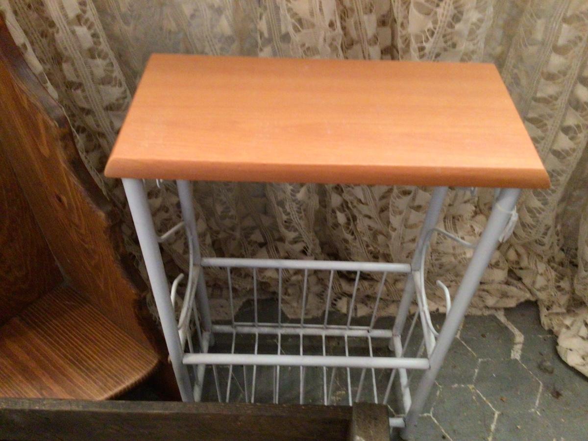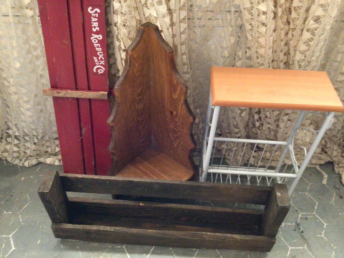You get wood top metal stand, corner shelf, wood wall hanging, and two wood wagon sides from Sears and Roebuck Co.