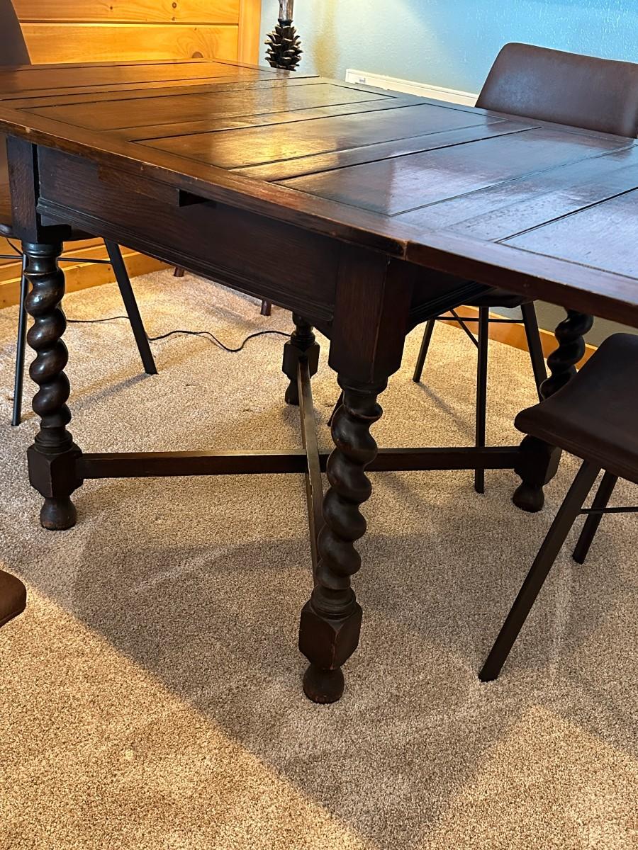 Vintage Drop Leaf Wood Table With Barley Twist Legs Does not include chairs