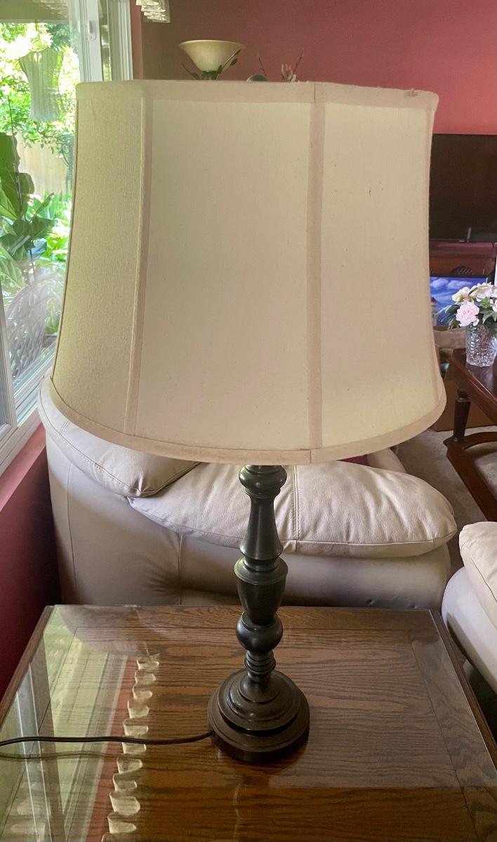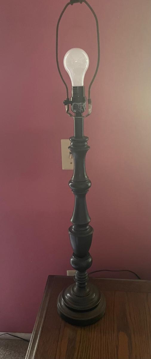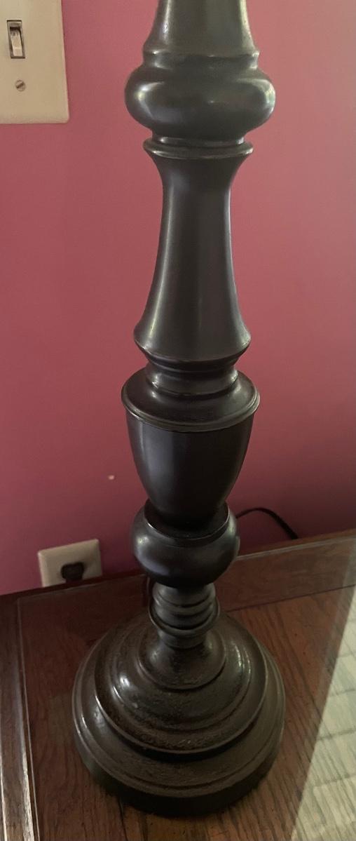 Lamp body made by wood turning. Approx 33” tall.