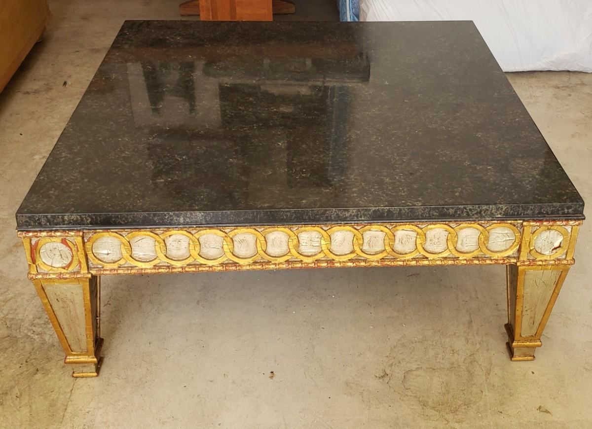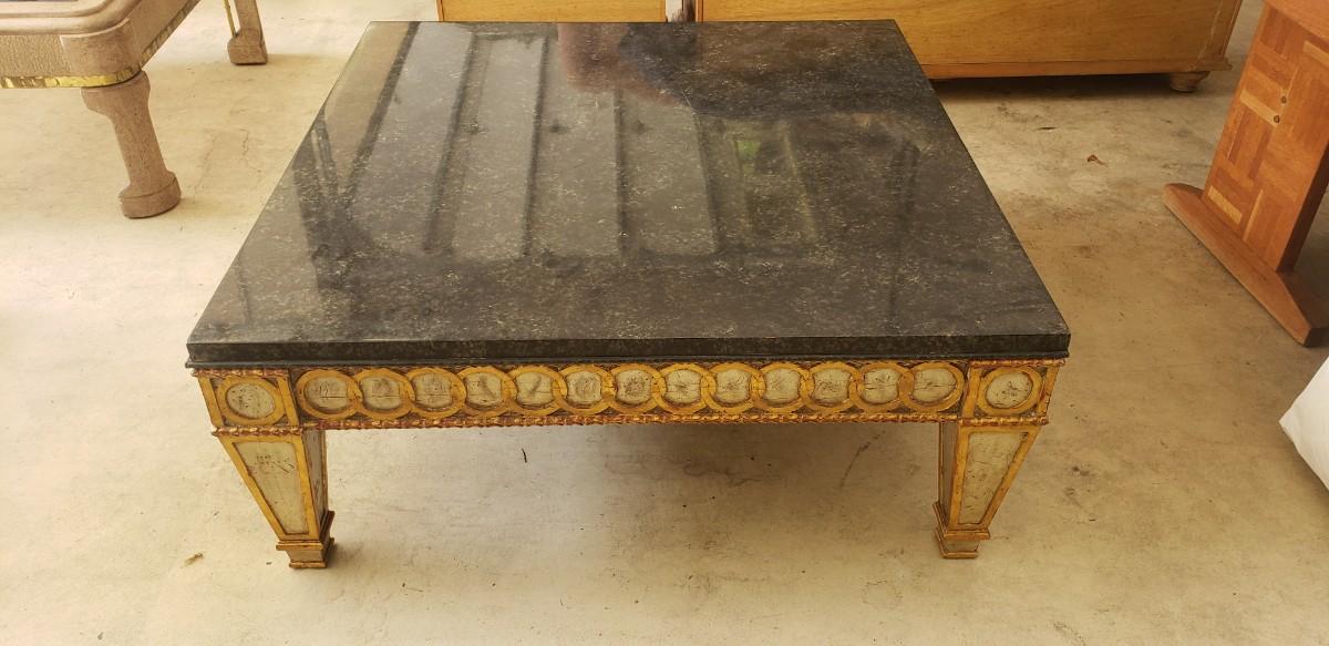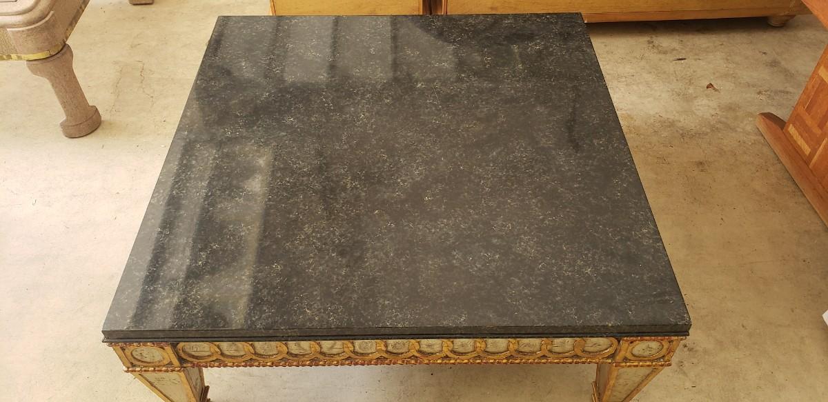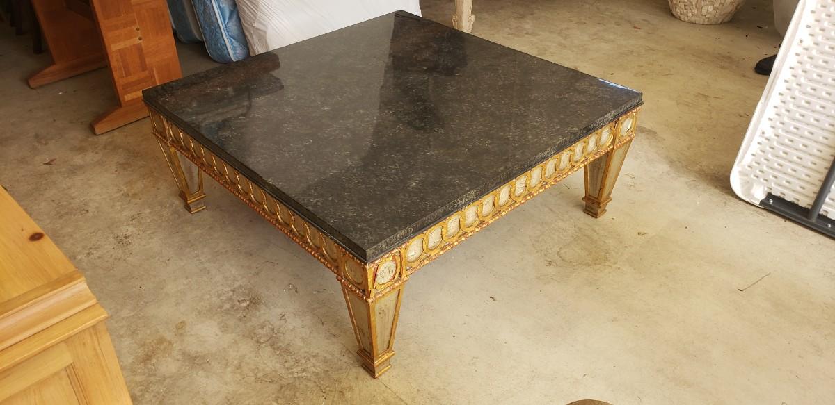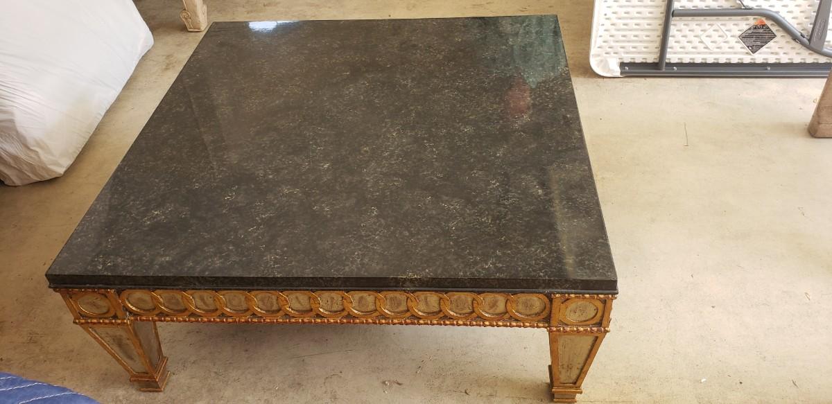 Wood Table with Black Faux Marble Top