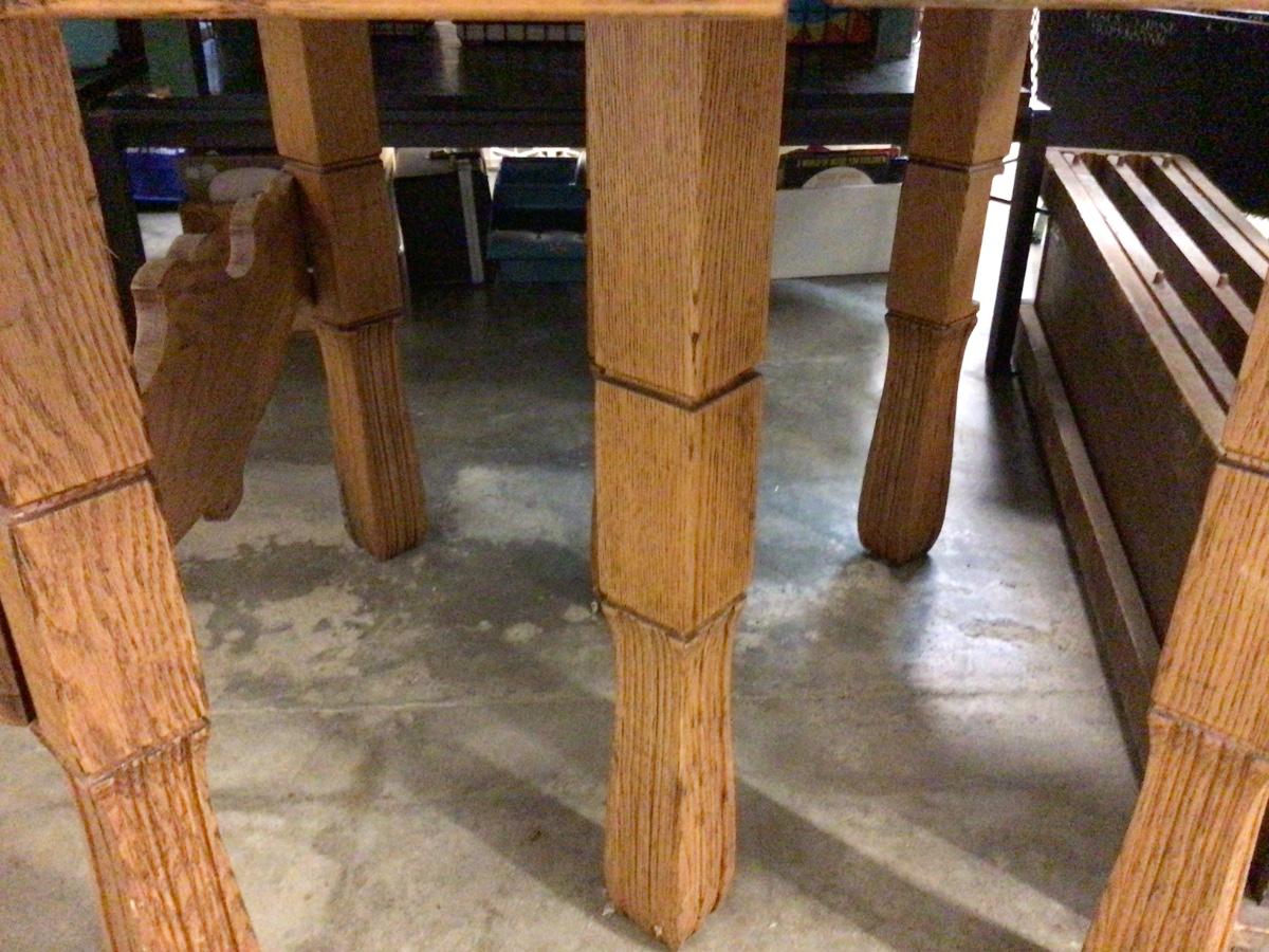 This is a great wood table, picture with one leaf, there are three more in a handy wood box. Great for every day use the when you have company add extra leaves to grow the table.