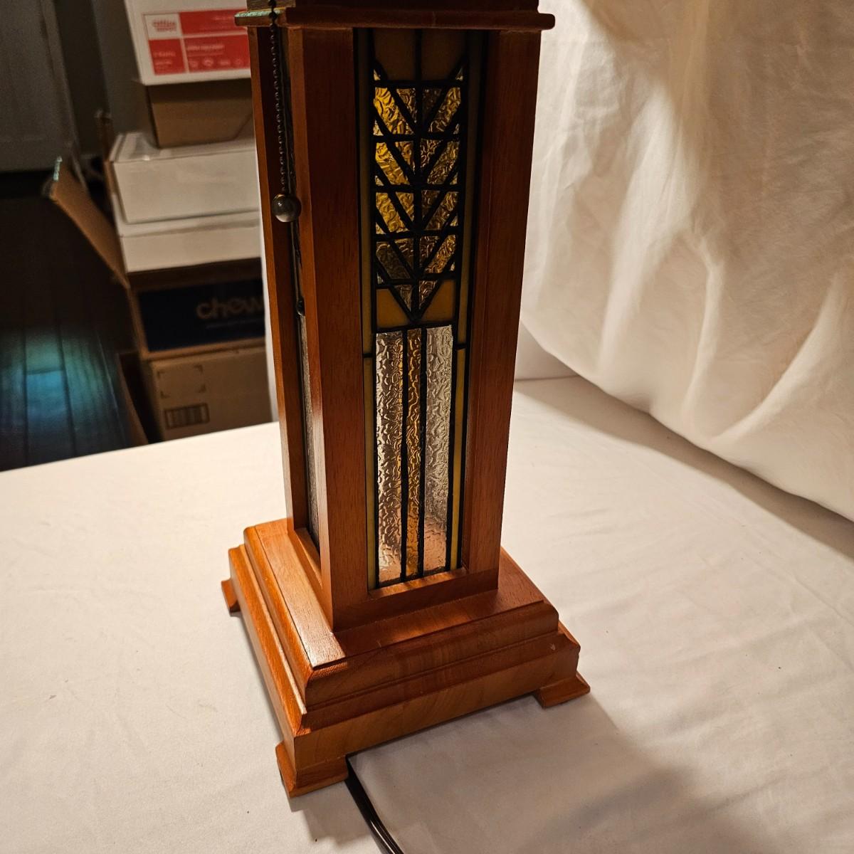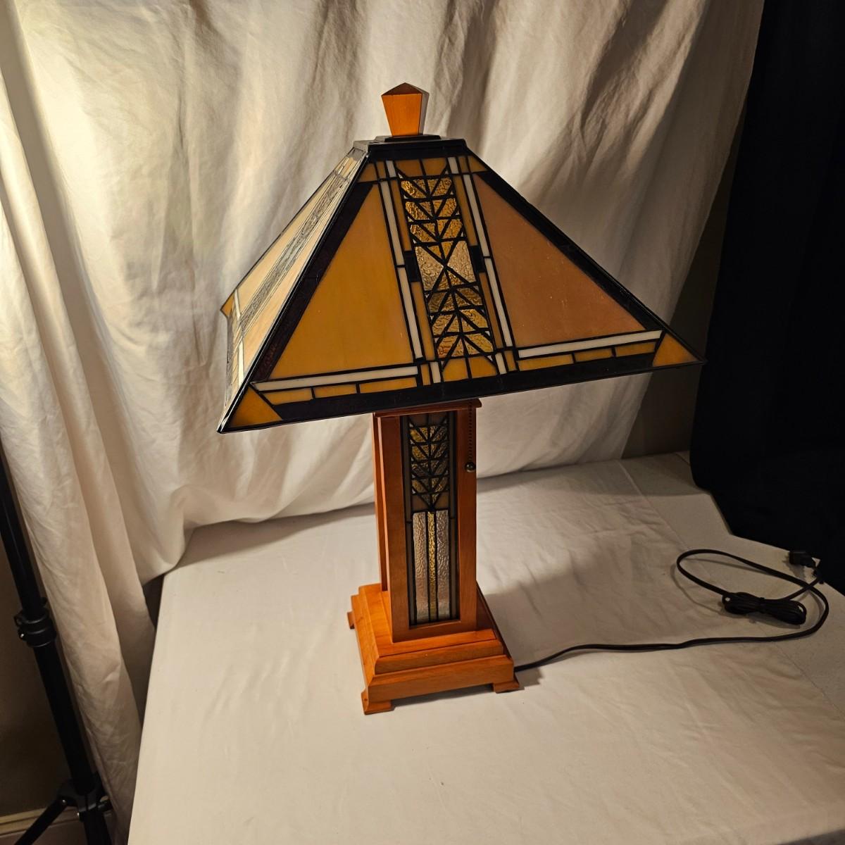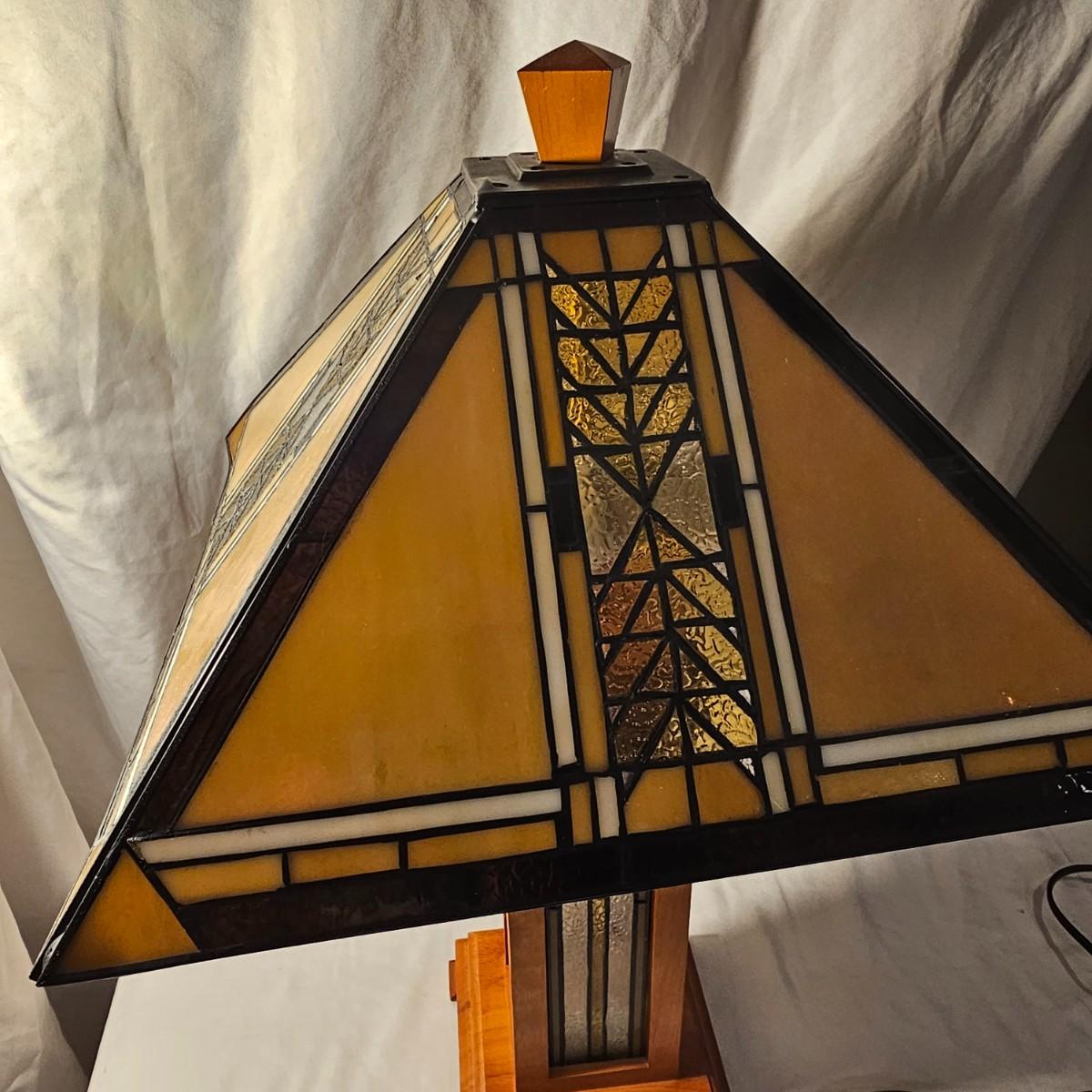 Wood Tabletop Lamp w/Stained Glass Shade (D-JS)