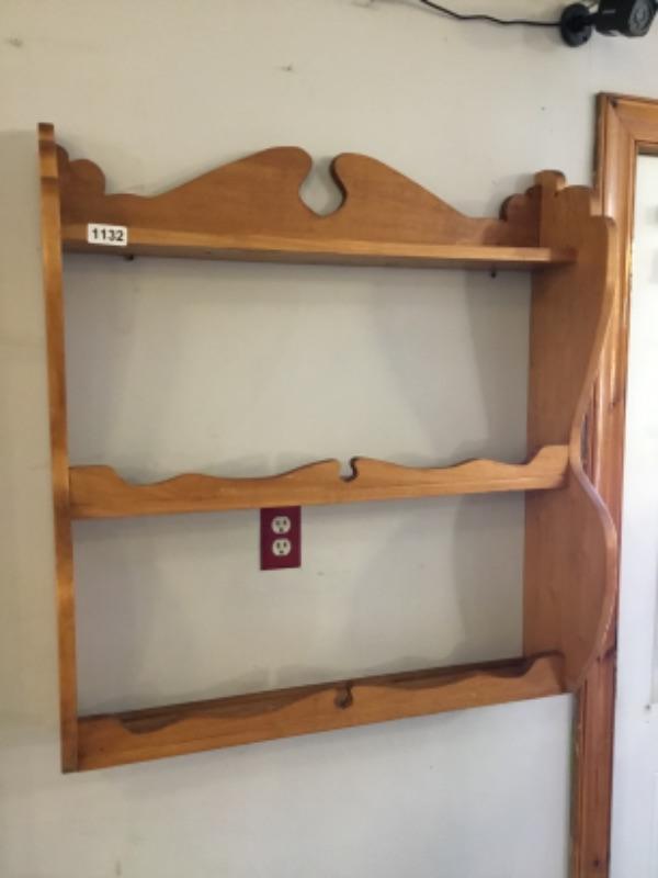 Wood three tier wall shelf lot 1132