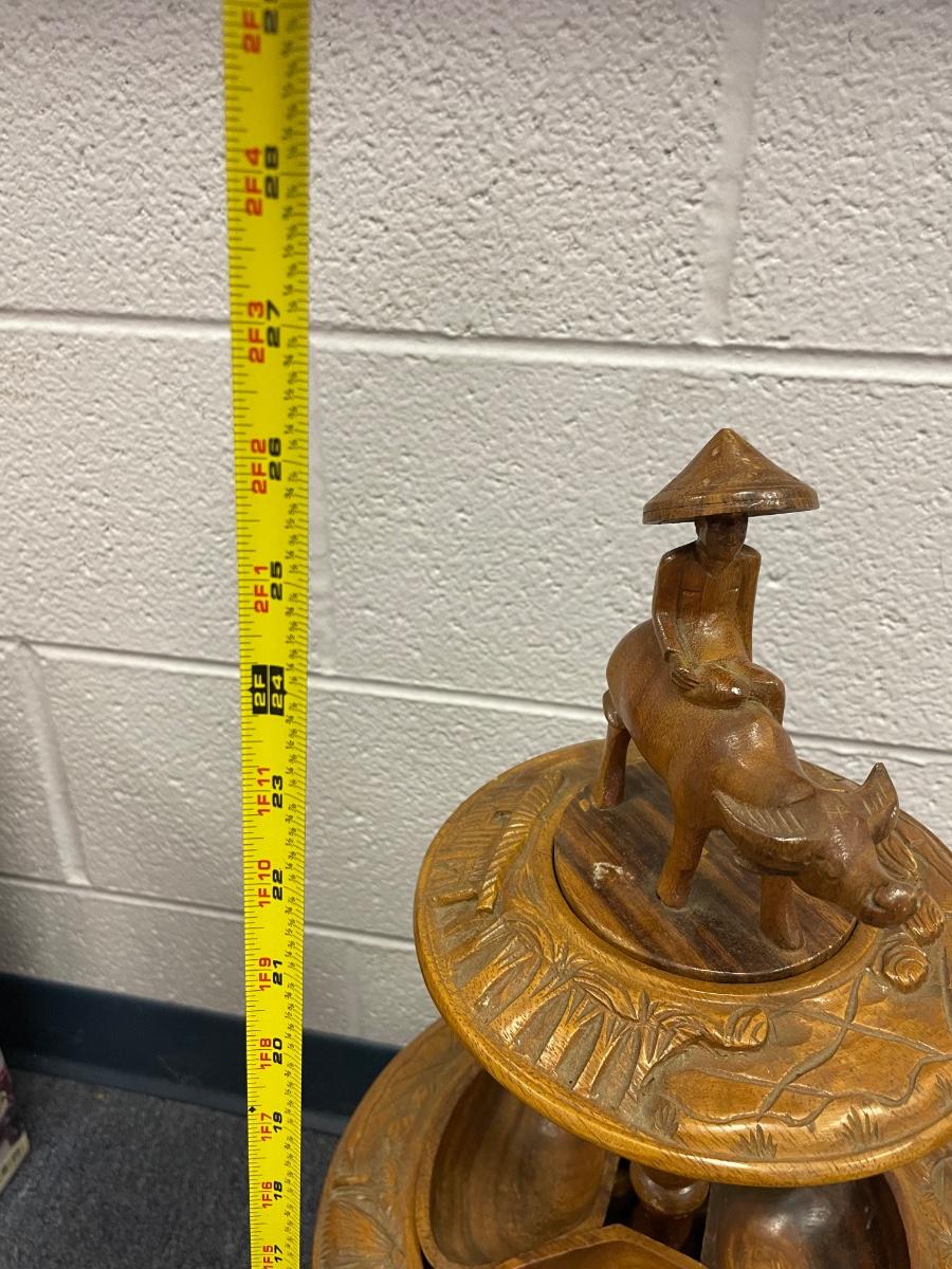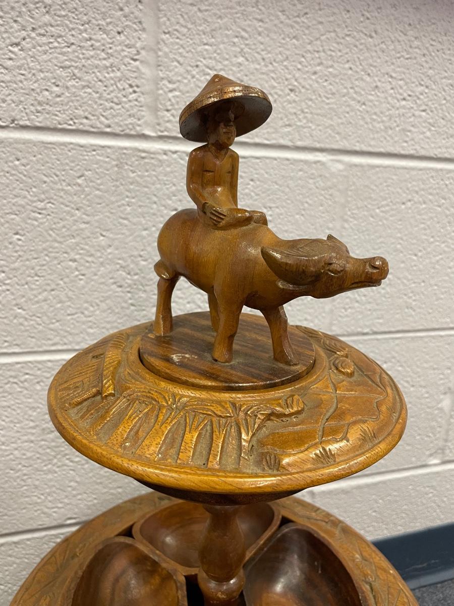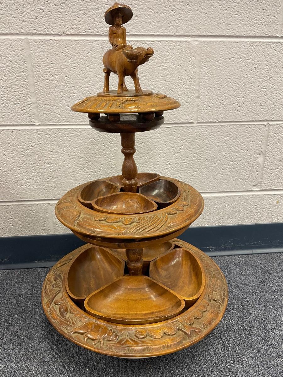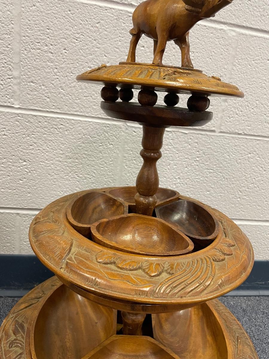 Vintage MCM wooden lazy Susan, Monkey pod,Philippines,PooPoo platter, carved wood