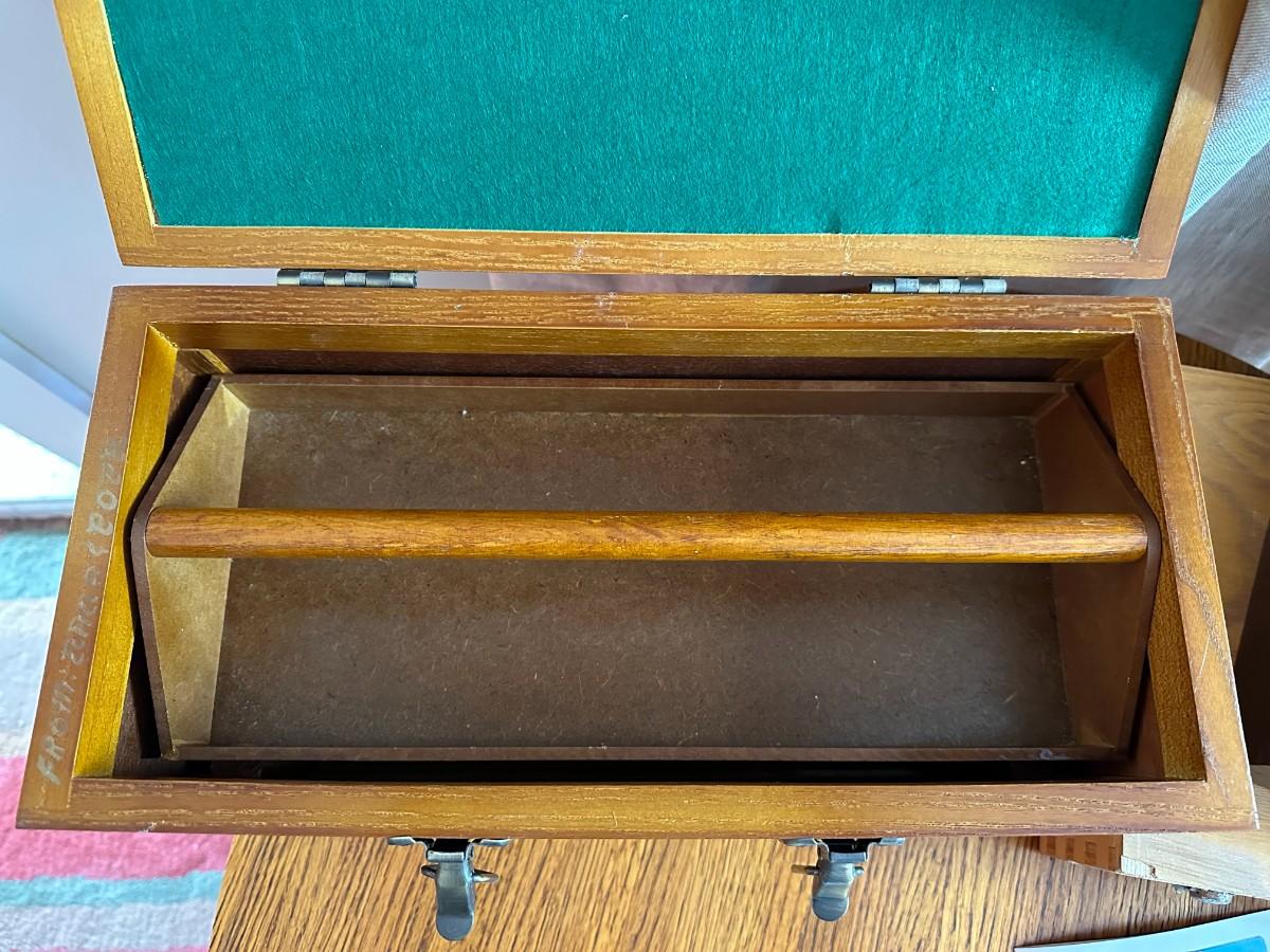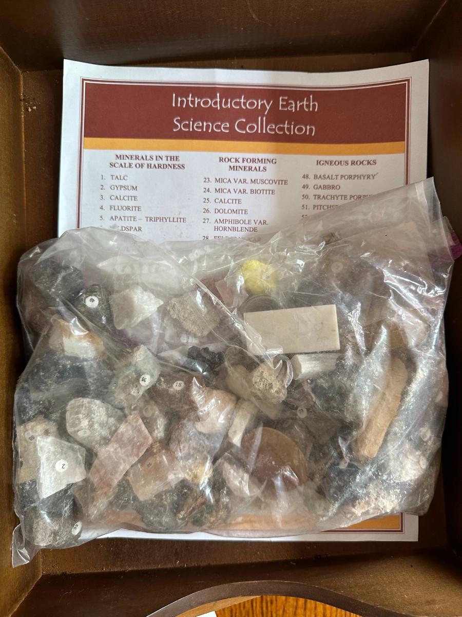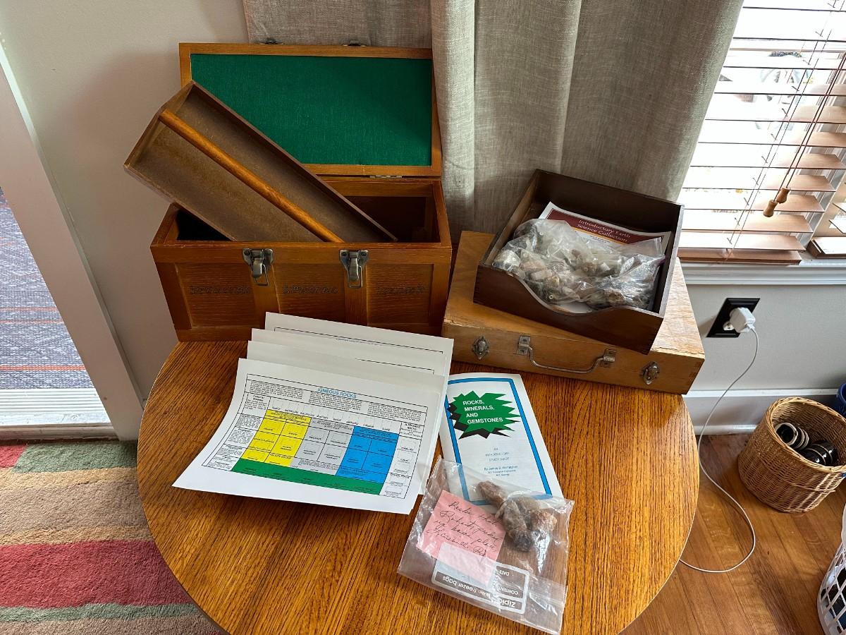 Wood Tool Box w/Tray, Tool box with Tools, Earth Science Rock Collection w/numbered rocks and literature, wood tray