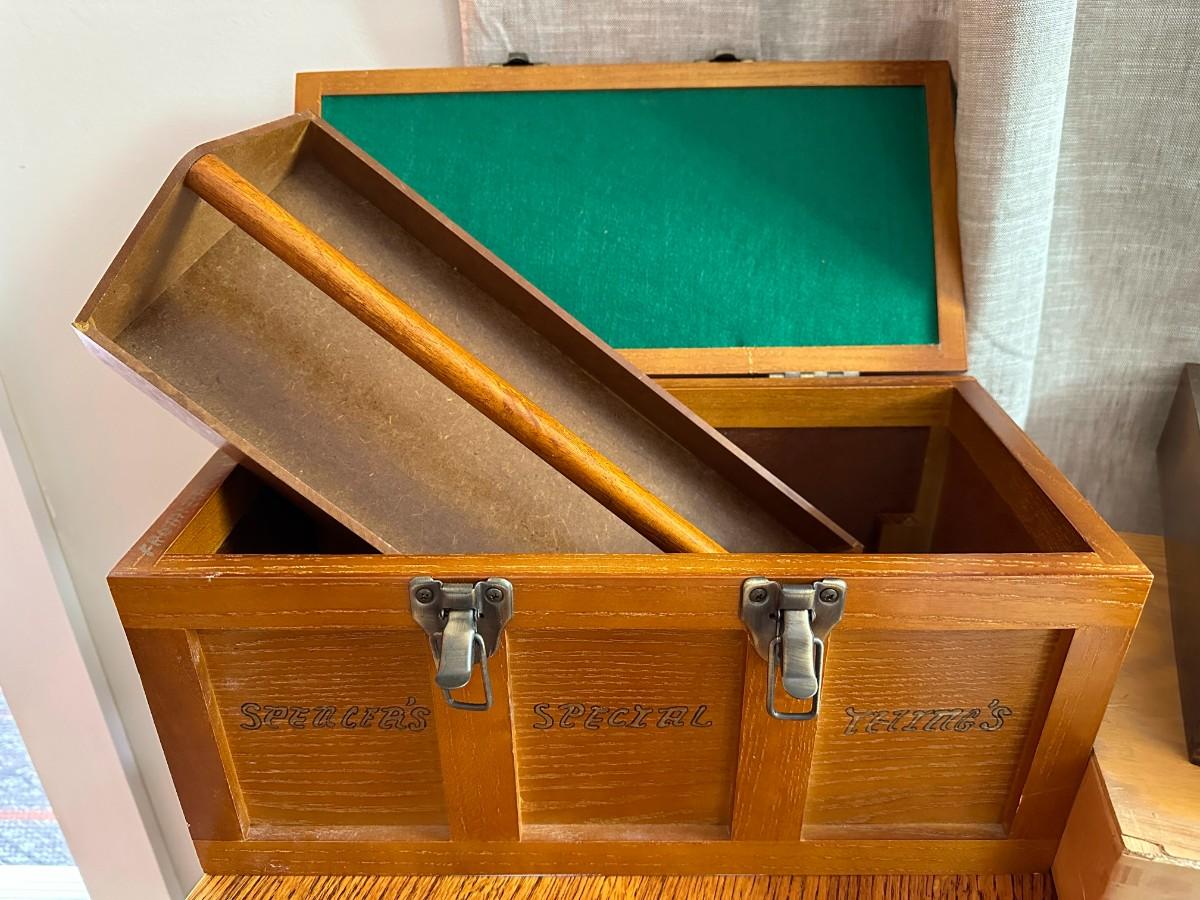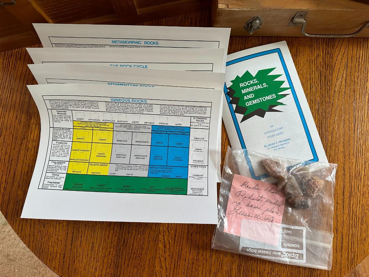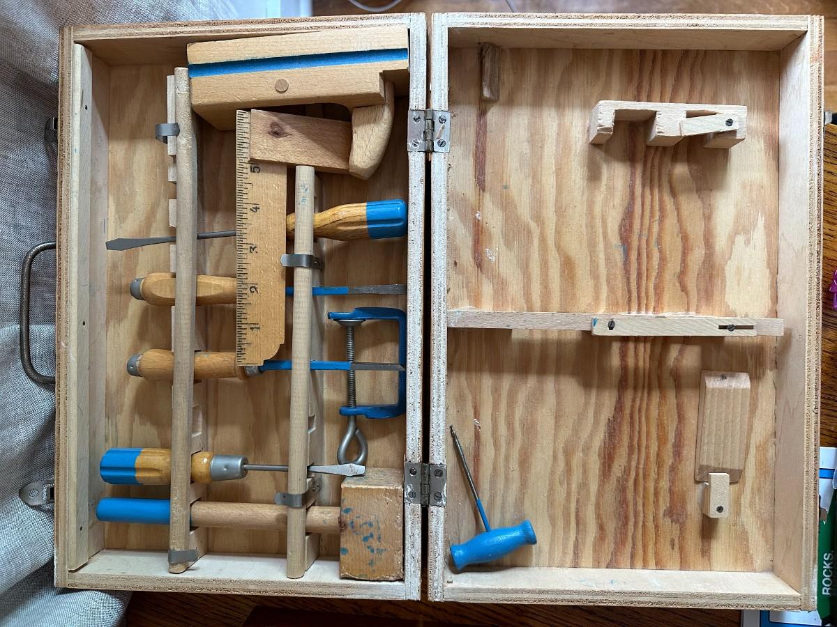 Wood Tool Box w/Tray, Tool box with Tools, Earth Science Rock Collection w/numbered rocks and literature, wood tray