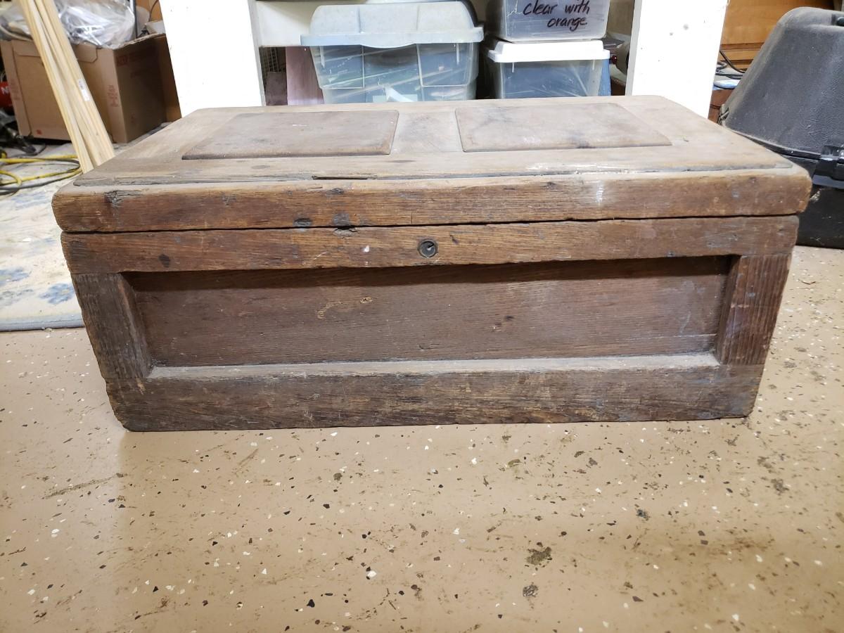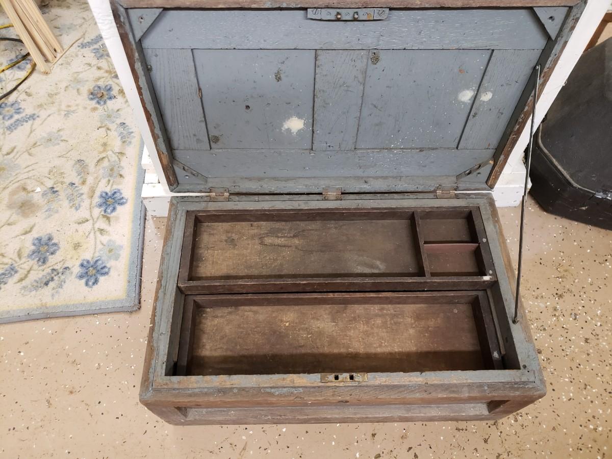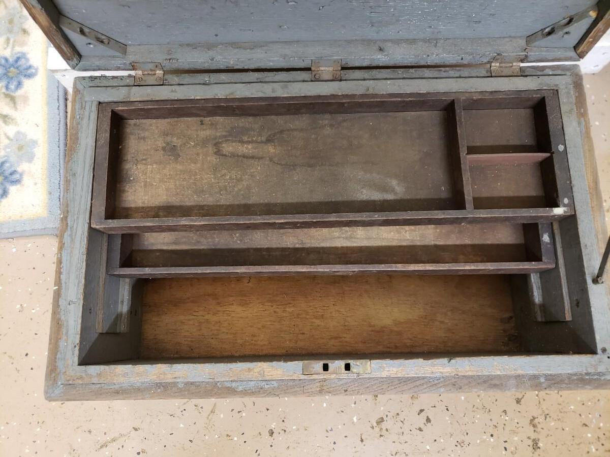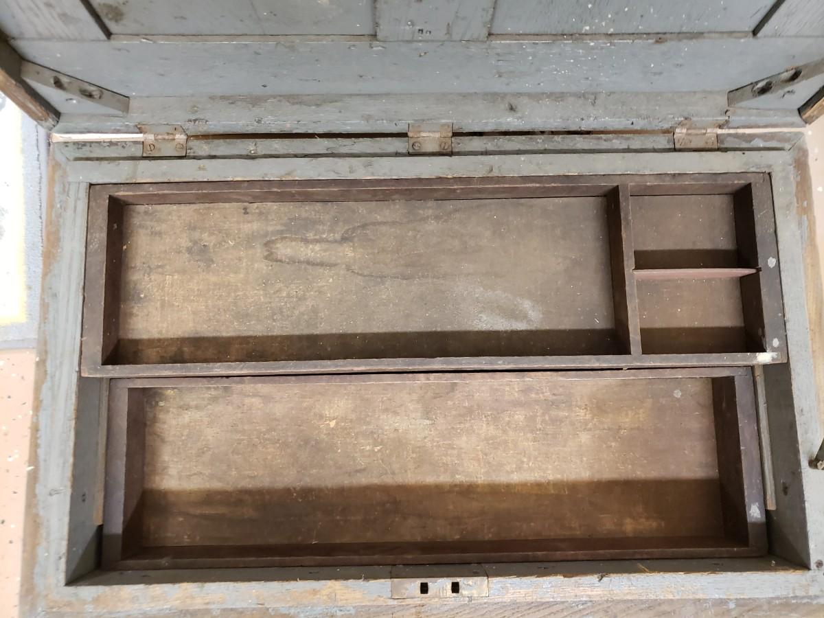 Wood toolbox with 2 sliding and removable trays 16"x10"x25"
